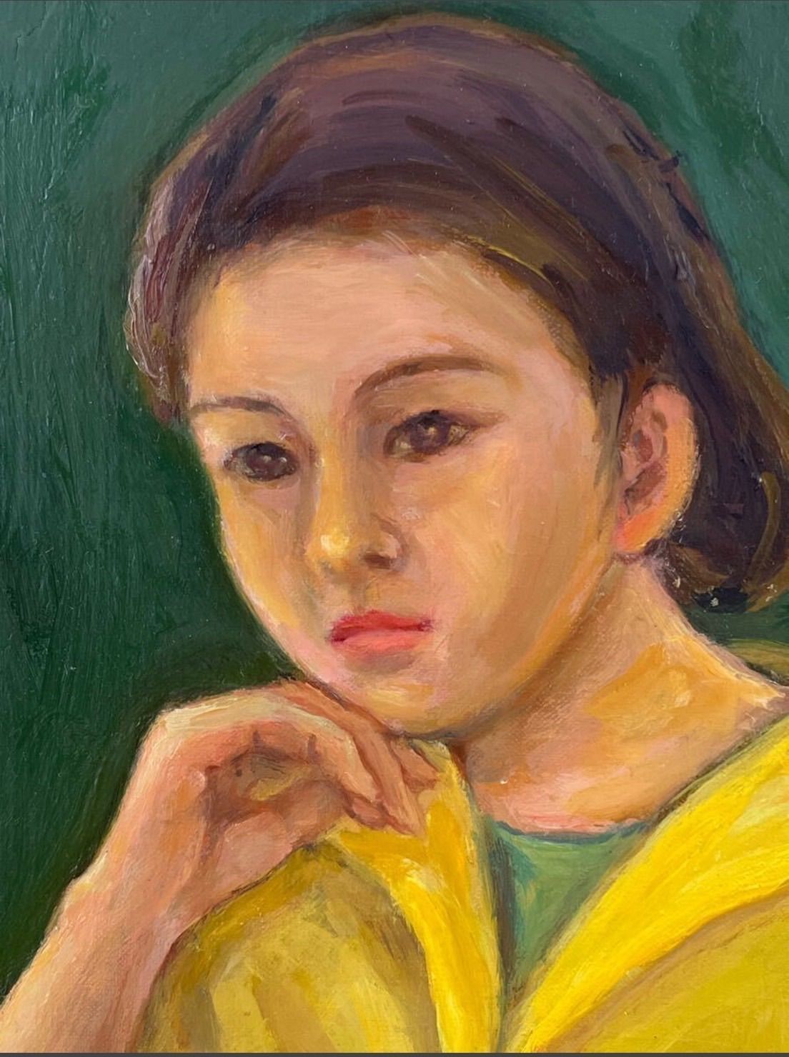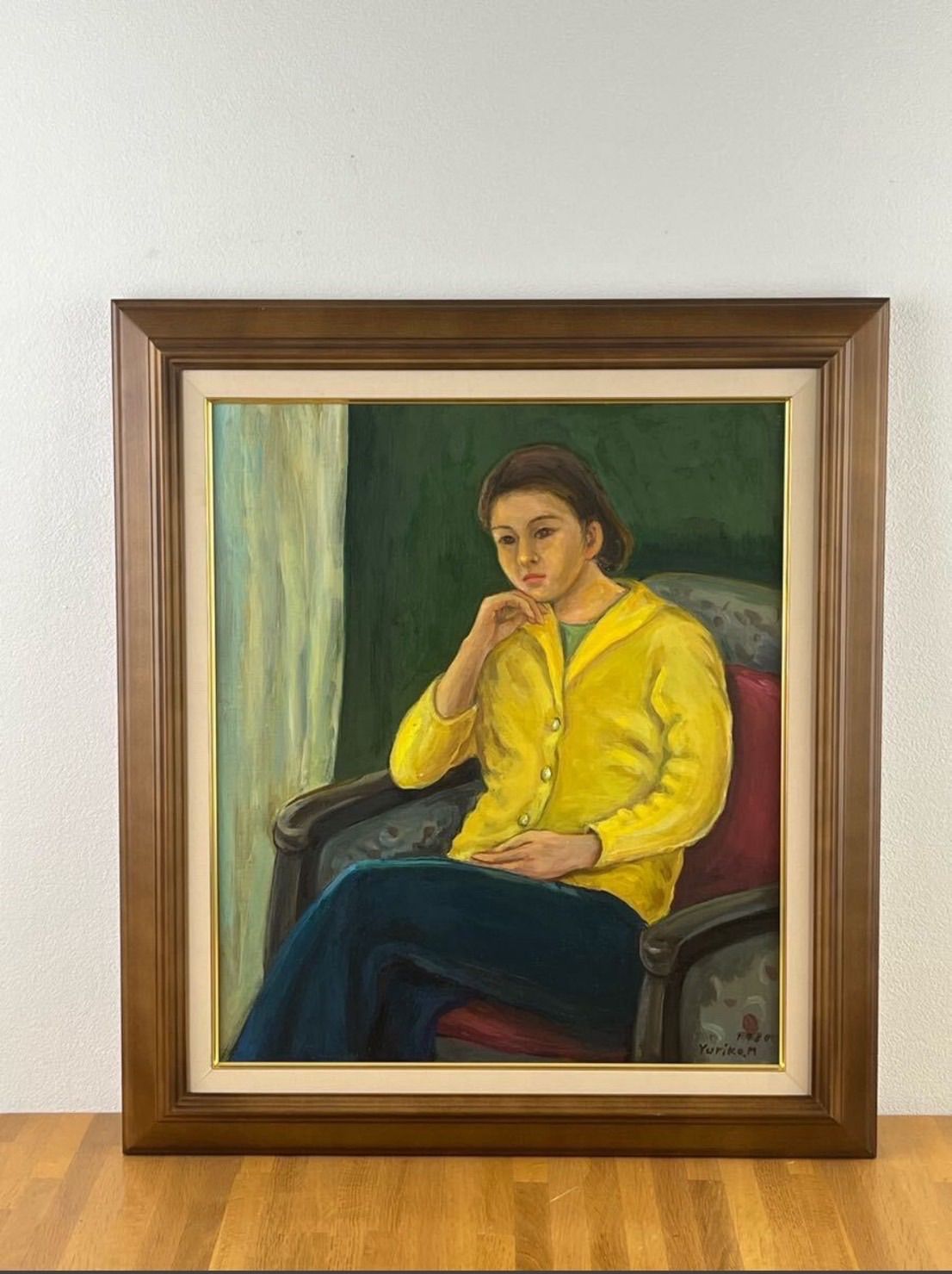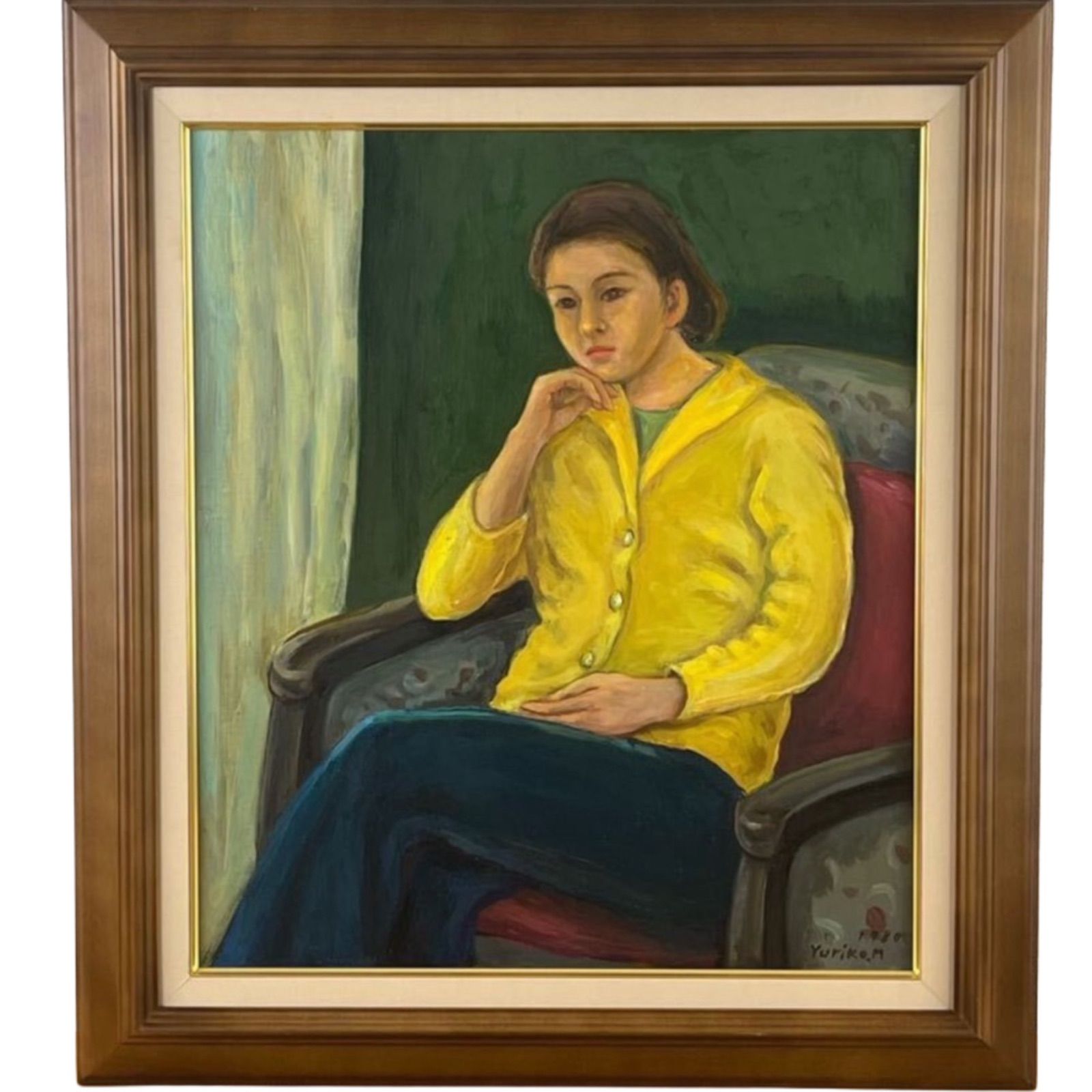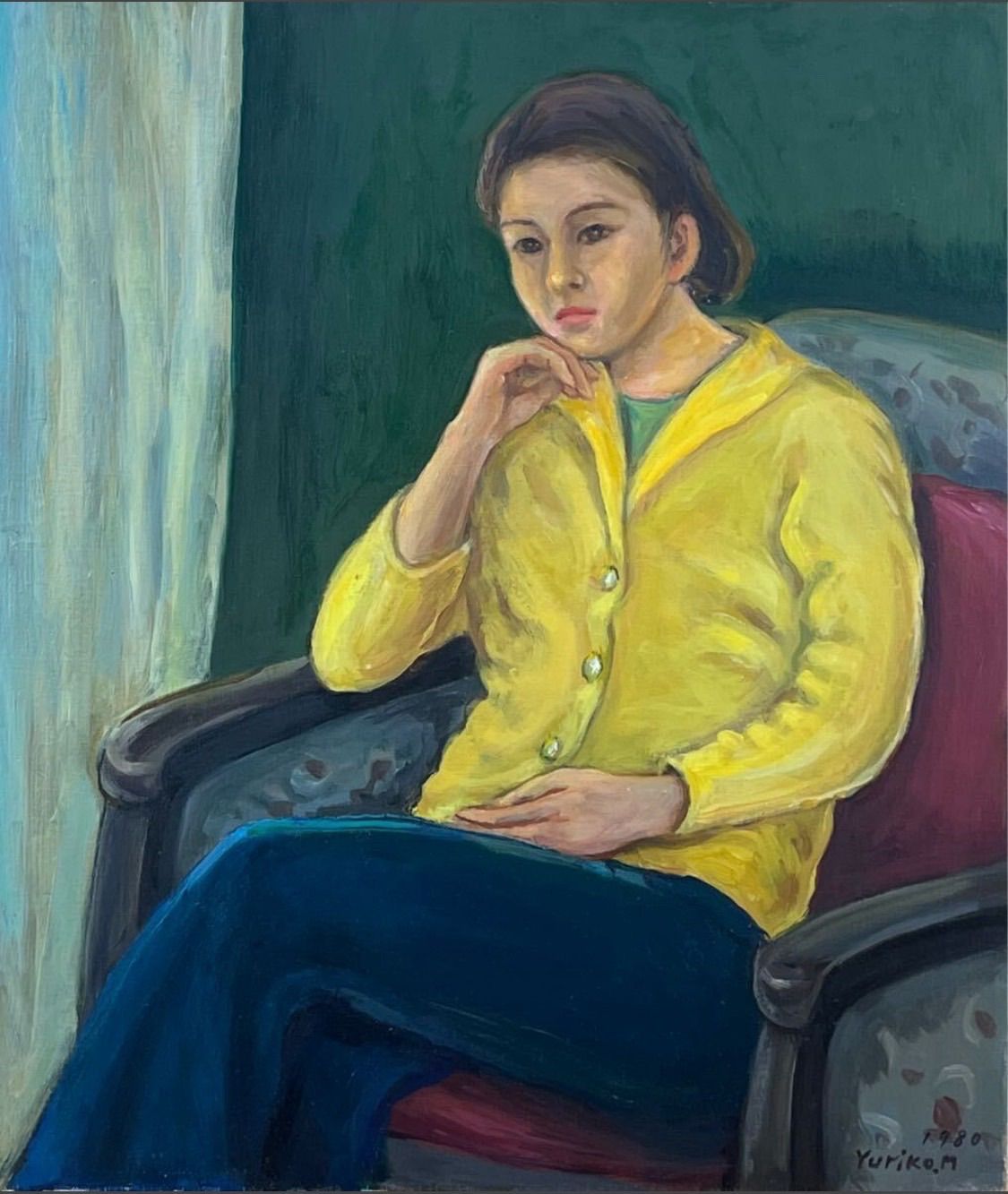 丸山ゆり子 (百合子) 「黄色いセータの女」油彩 人物画 1980年 F10号 渡欧 師 小林萬吾 元新協会員 春陽会員 二元会員