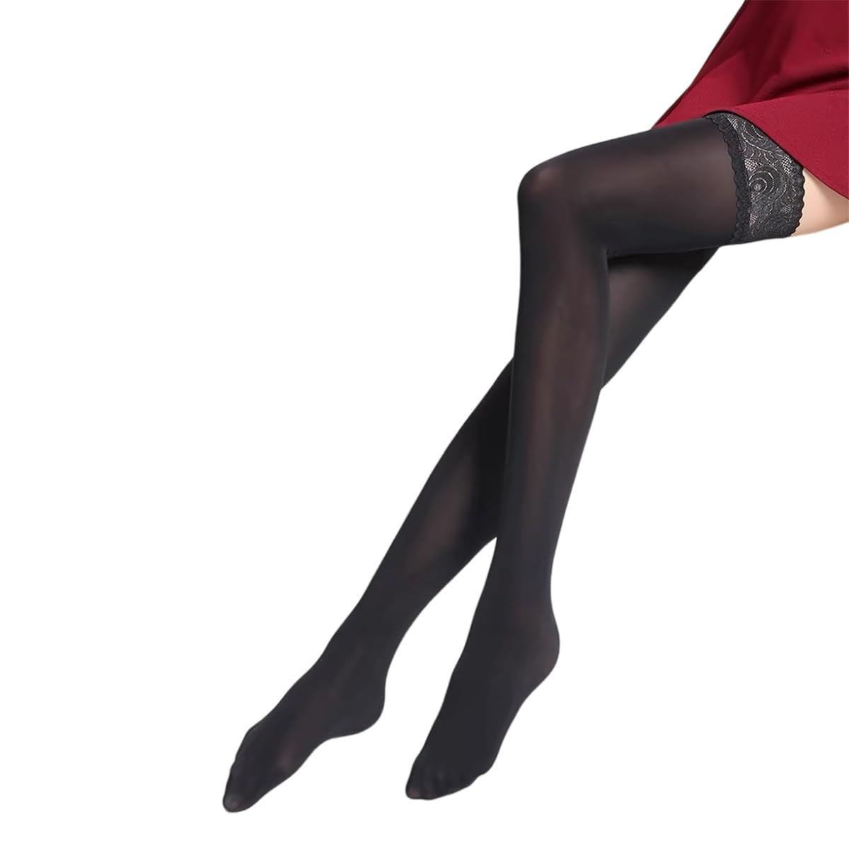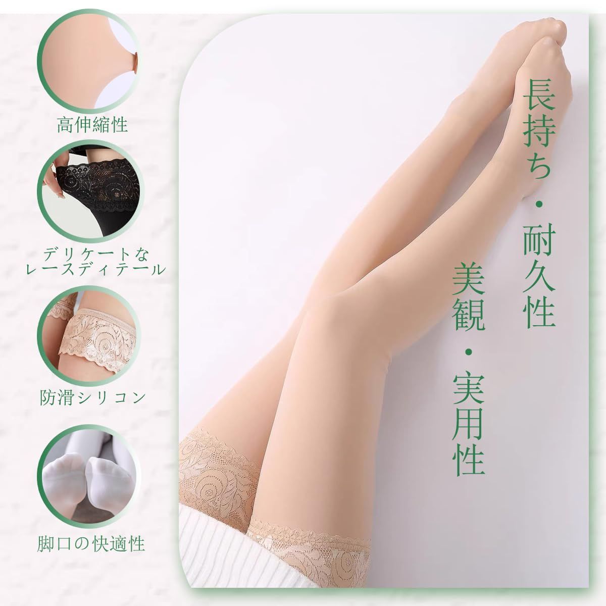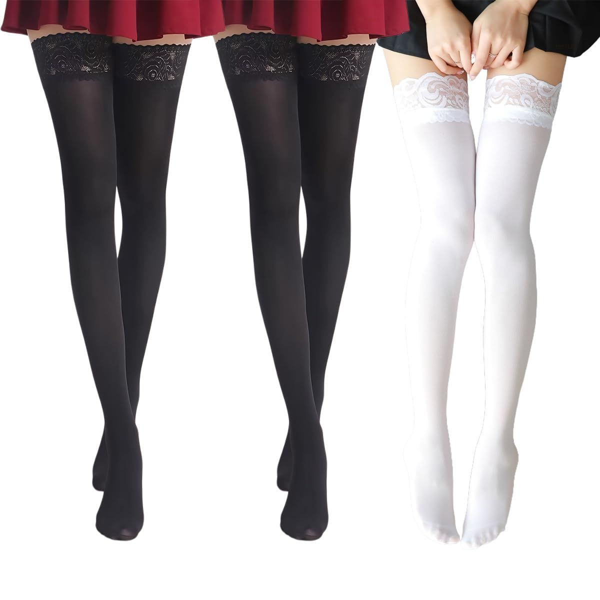 [POPULAR] ニーハイソックス ガーターストッキング 可愛いハイソックス cosplayや制服用 美脚 滑り止め付き 伸縮性あり レース付きストッキング 厚手のソックス 3色から選べます 四季を通じて使える