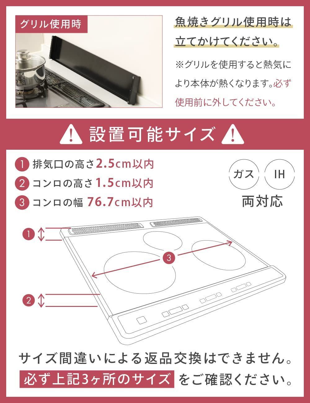 [CICADA] 排気口カバー スマート フラット コンロ 薄型 スリム 燕三条 (75cm ブラック(スチール))