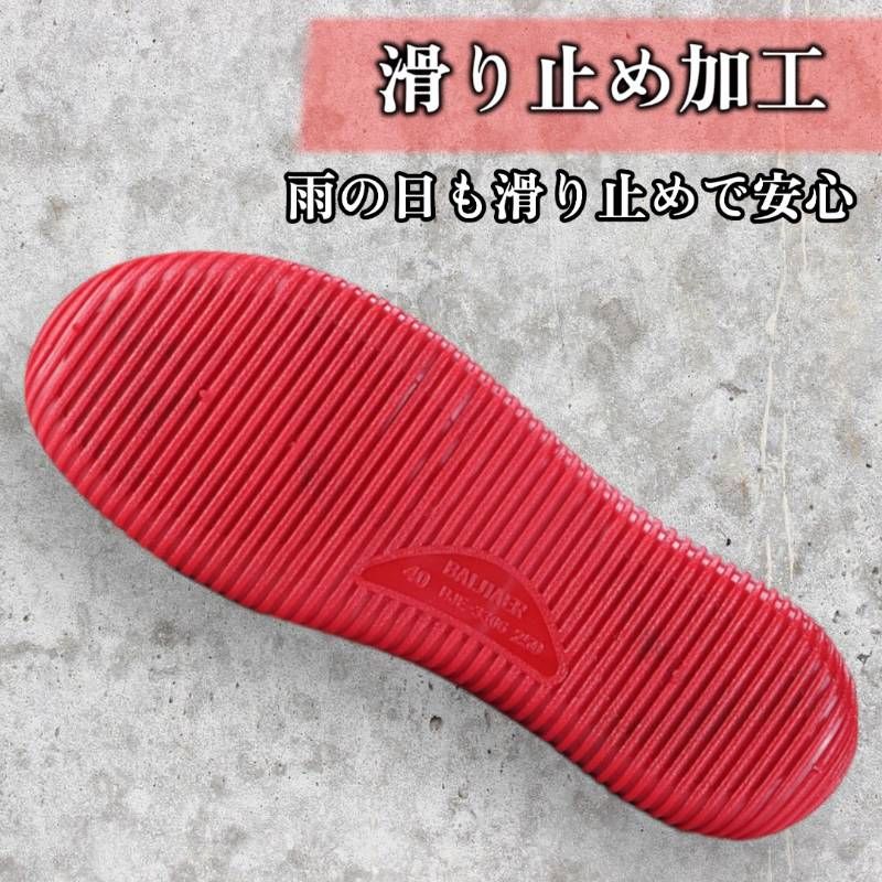 ・厚めのアウトソールで滑りにくく、濡れた路面も安心。