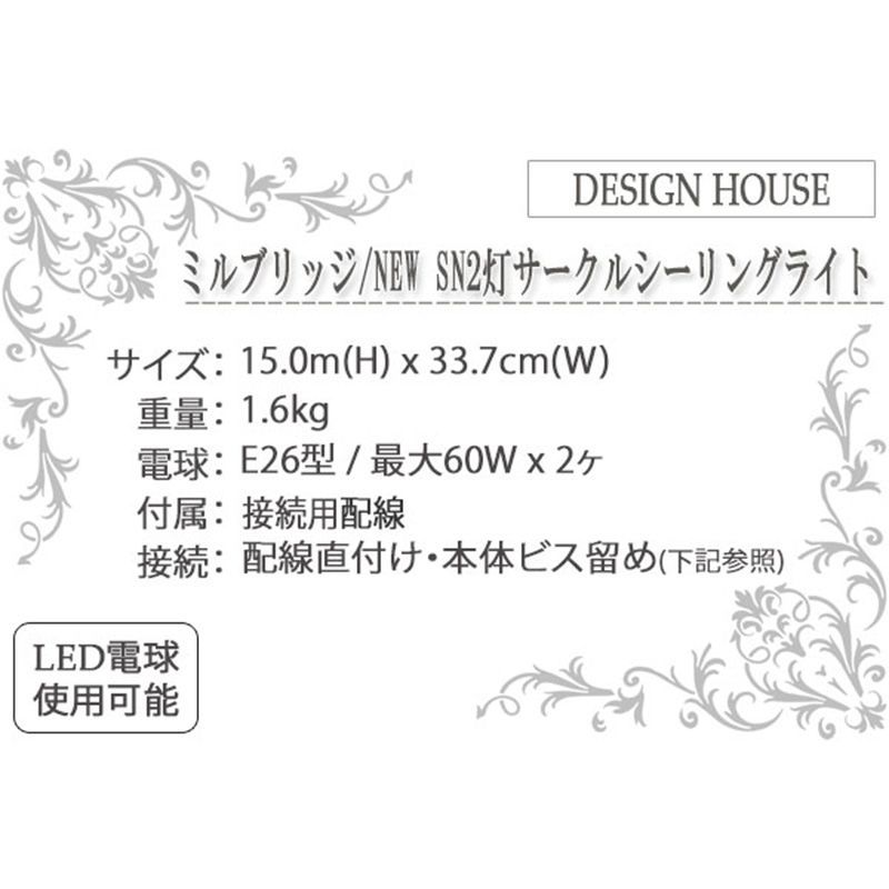 製品名: ミルブリッジNEW SN2灯シーリングライト(サテンニッケル)|サークル型・ガラスシェード|天井照明〈屋内用〉