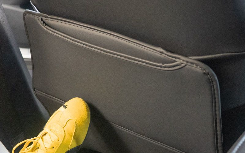 後部座席のお子様の足による汚れや傷からフロントシートをしっかり保護し、さらに収納ポケットを増設することで小物や必需品を整理整頓できます。