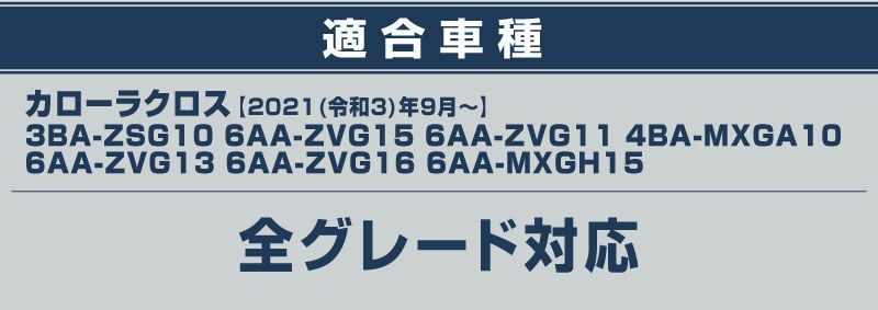 カローラクロス 3BA-ZSG10 6AA-ZVG15 6AA-ZVG11 4BA-MXGA10 6AA-ZVG13 6AA-ZVG16 6AA-MXGH15【2021(令和3)年9月~】