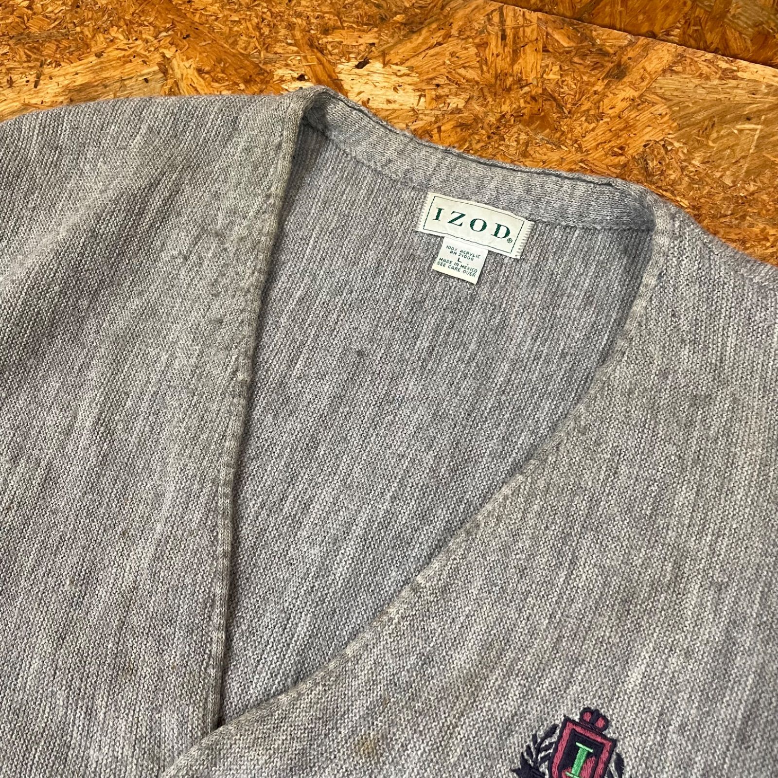 ・商品名: ’90s メキシコ製 IZOD カーディガン L グレー アイゾッド 90年代 ヴィンテージ ビンテージ VINTAGE ユーズド USED 古着