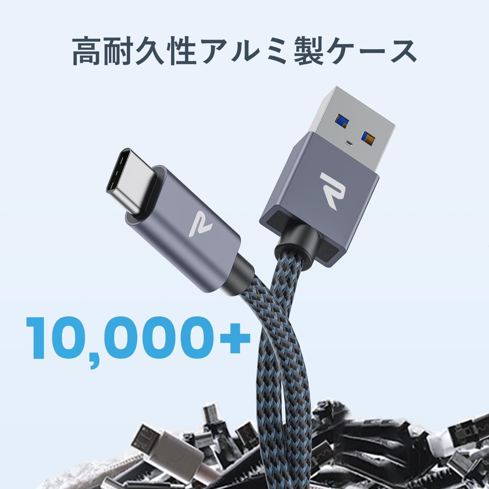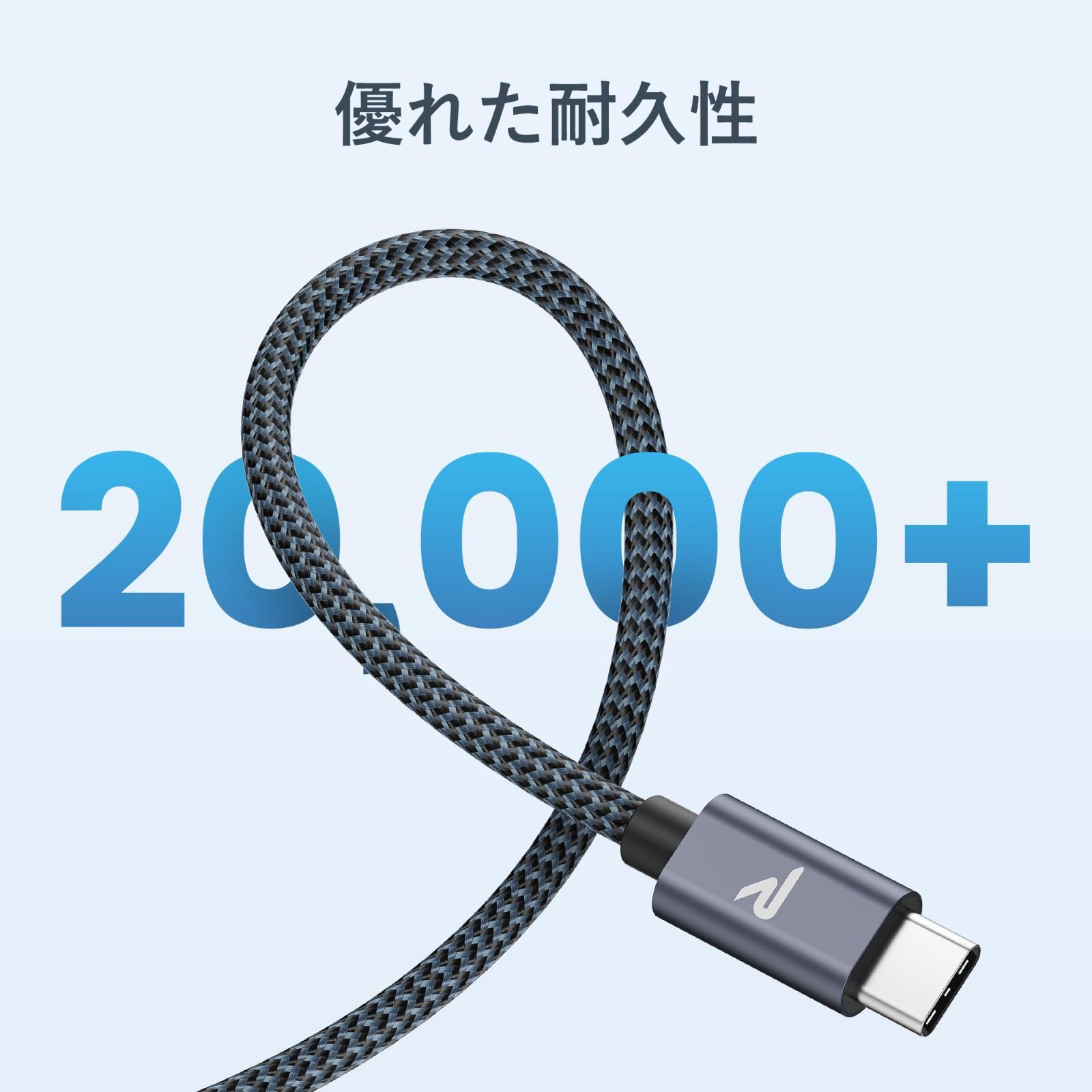 【耐久性と柔軟性を両立】ナイロンの二重編み込み素材を採用し、丈夫で信頼性の高いUSB-A to USB-Cケーブルを提供します。20000回以上の曲折テストにたえて、頻繁な挿抜や長時間の使用にも耐えられます。