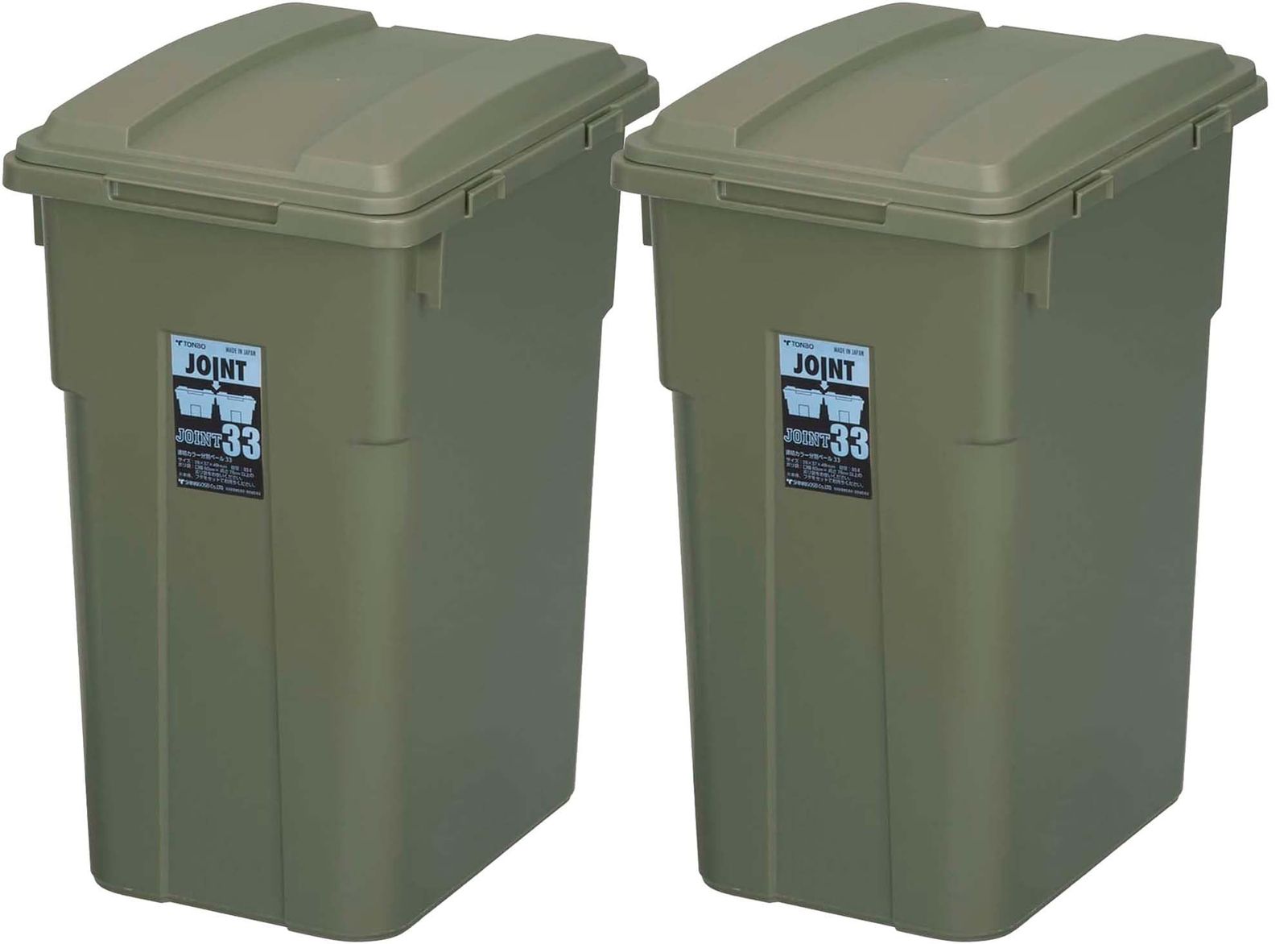 【 限定】 新輝合成(Shinki Gosei) トンボ ゴミ箱 連結可能 33リットル カーキグリーン 2個セット 幅28×奥行36.5×高さ49.5cm 蓋付き 分別 屋外 ベランダ 大きい アウトドア 丈夫 日本製