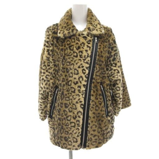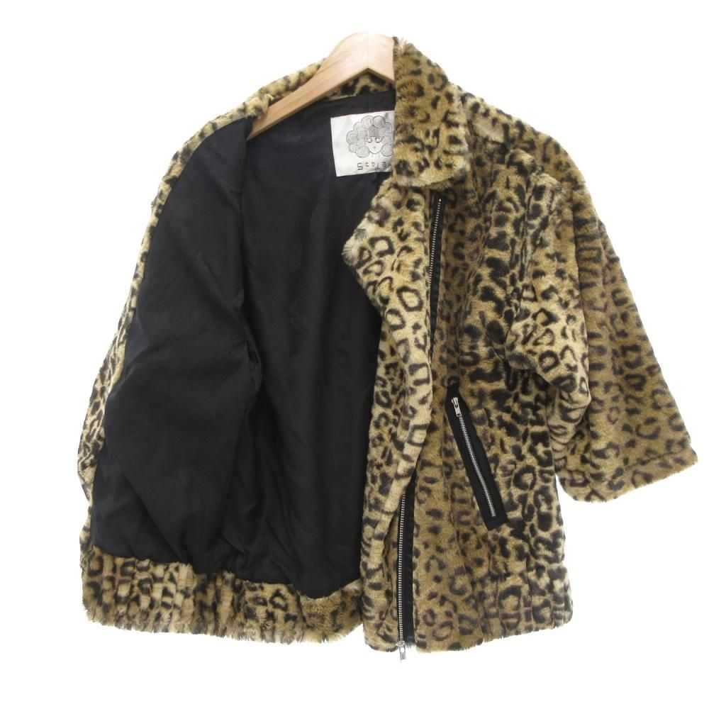 【商品名】スカラー ScoLar レオパード柄 フェイクファー ジャケット M ブラウン ベージュ ボア ヒョウ柄 /UO