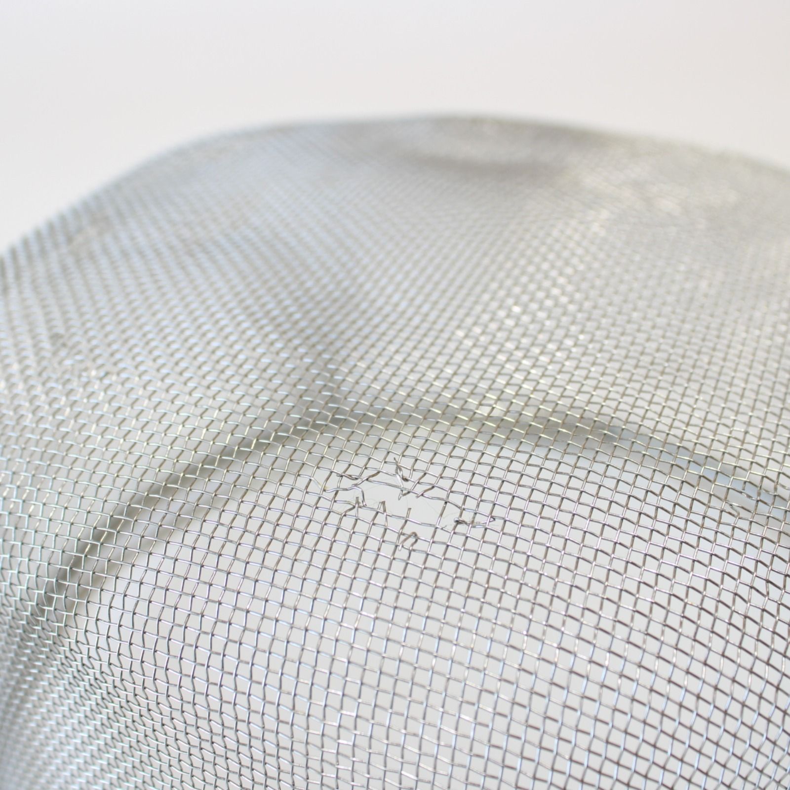 ザルの脚部が欠損しております、ザルの網に数か所の破れがございます。