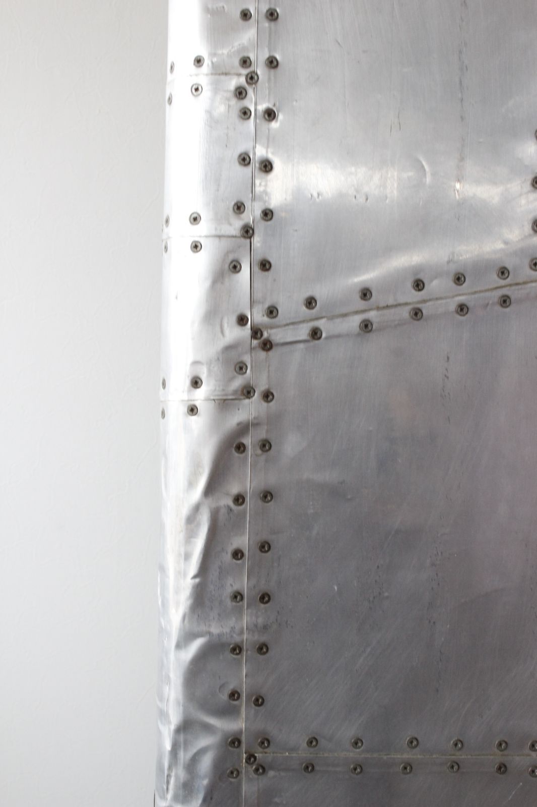 戦闘機のマルチリベットで留められたパネルを模倣したアルミニウム製。