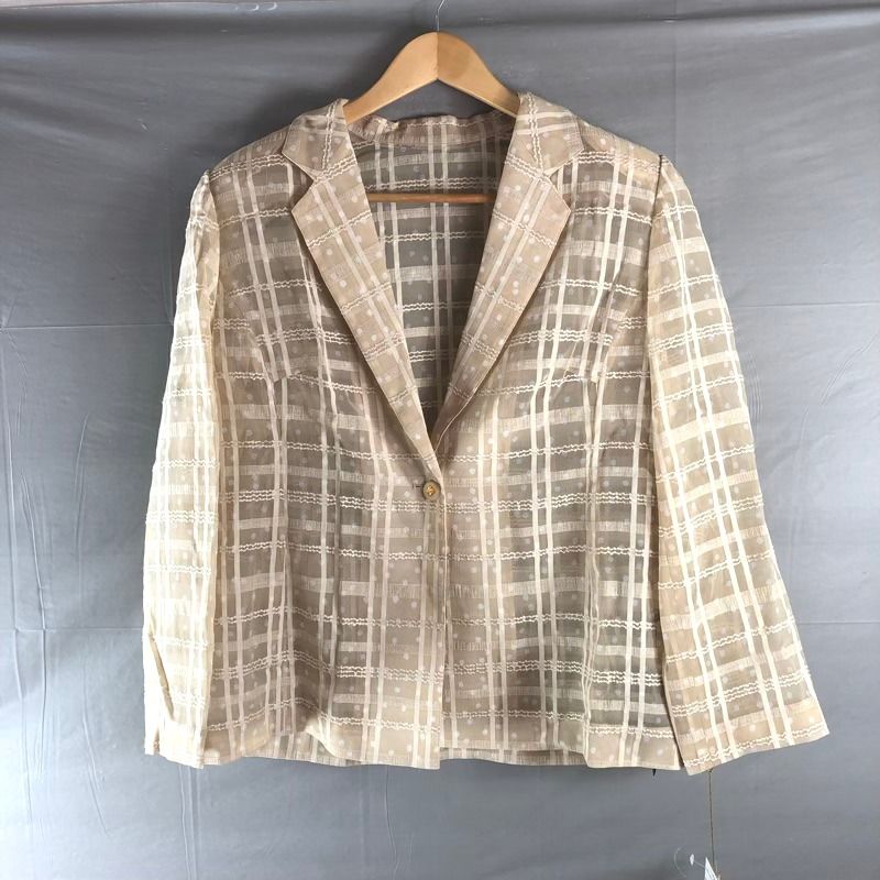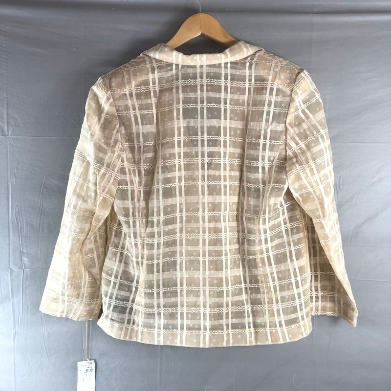 サンバラール Sanbalard ジャケット 薄手 水玉 チェック柄 飾りボタン 麻 綿 肩パッド タグ付き ベージュ系 15BRサイズ 2025091400209