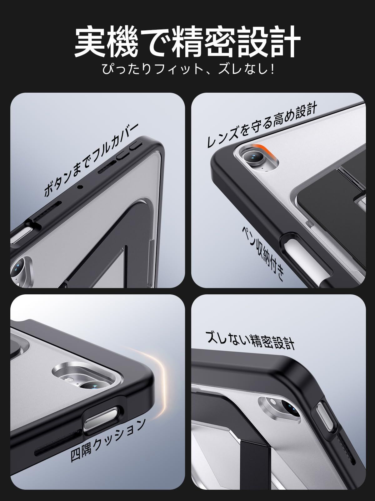 【米軍MIL規格・縦置き/横置きスタンド】iPad mini7 ケース(A17 Pro 2024対応)iPad mini 第7世代/第6世代(2024/2021モデル)専用 アルミ調節式 縦横スタンド ペンシルホルダー付き 薄型 軽量 耐衝撃 半透明カバー (ブラック)