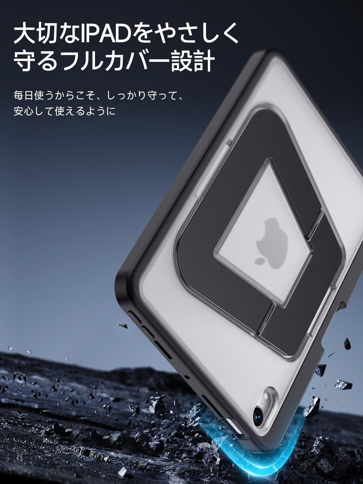 【信頼できる耐衝撃保護】:米軍の耐久基準「MIL-STD-810H」を大きく上回るテストをクリア。硬質なポリカーボネート背面と柔らかいTPUバンパーを組み合わせ、日常の落下や擦れからしっかりガード。さらに、四隅に搭載されたX-SHOCK第3世代構造と360°エアクッションが衝撃を吸収し、大切なアイパッド ミニ7/6世代をしっかり守ります。