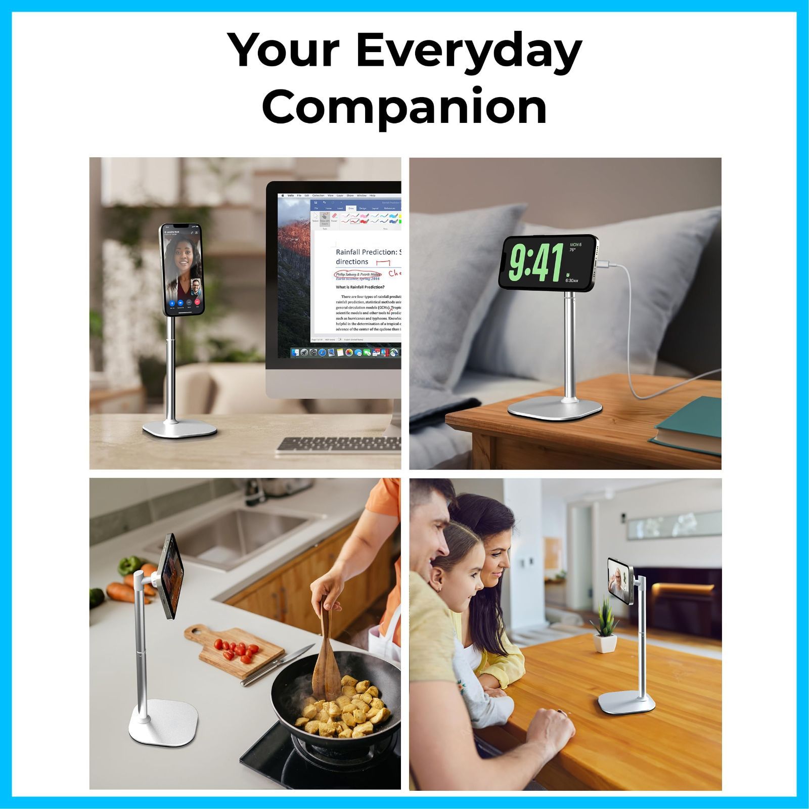 日常にフィットする柔軟性 家族とのビデオ通話や在宅ワークの会議、料理中のレシピ確認など、あらゆるシーンで活躍するハンズフリーのマグセーフ対応iPhoneスタンドです。