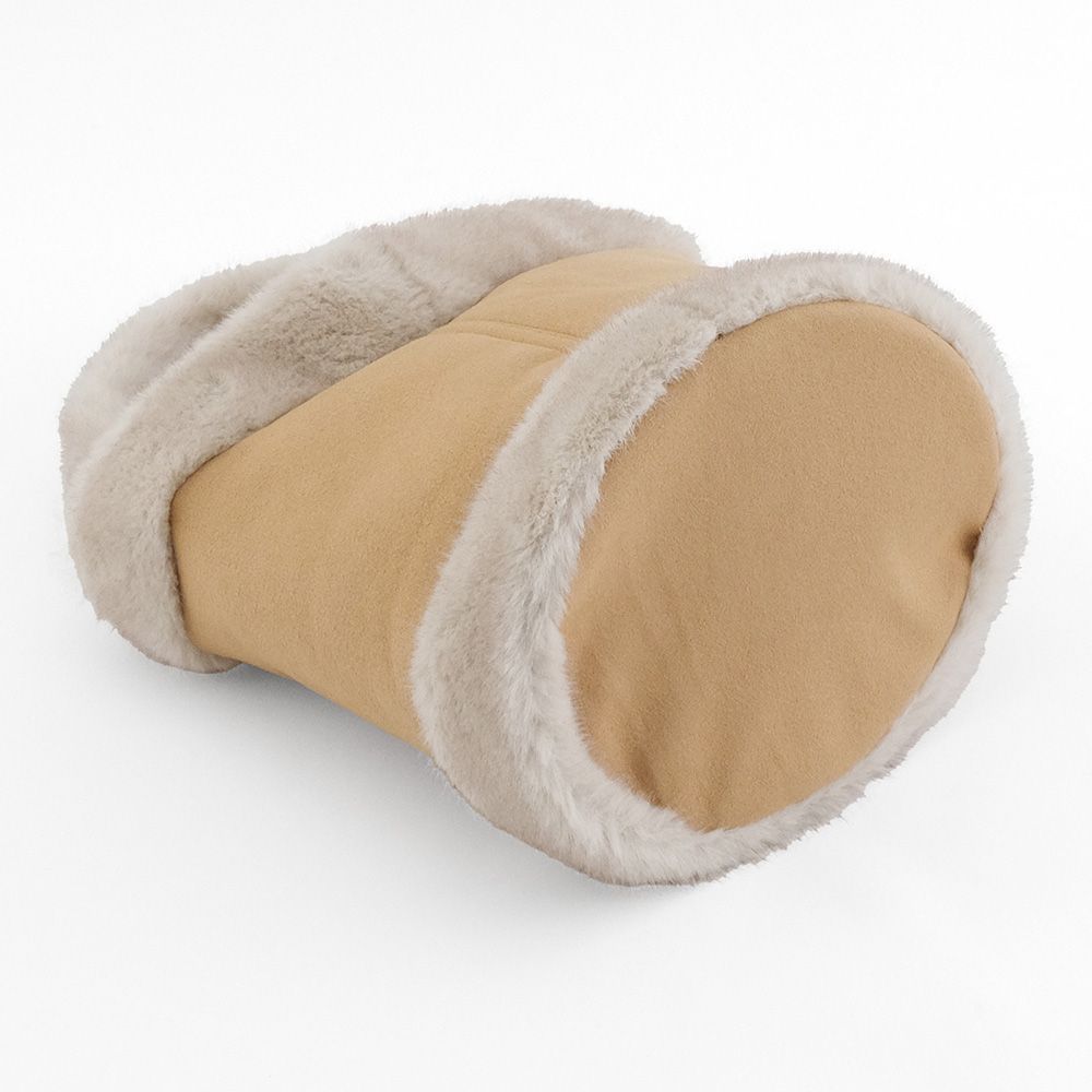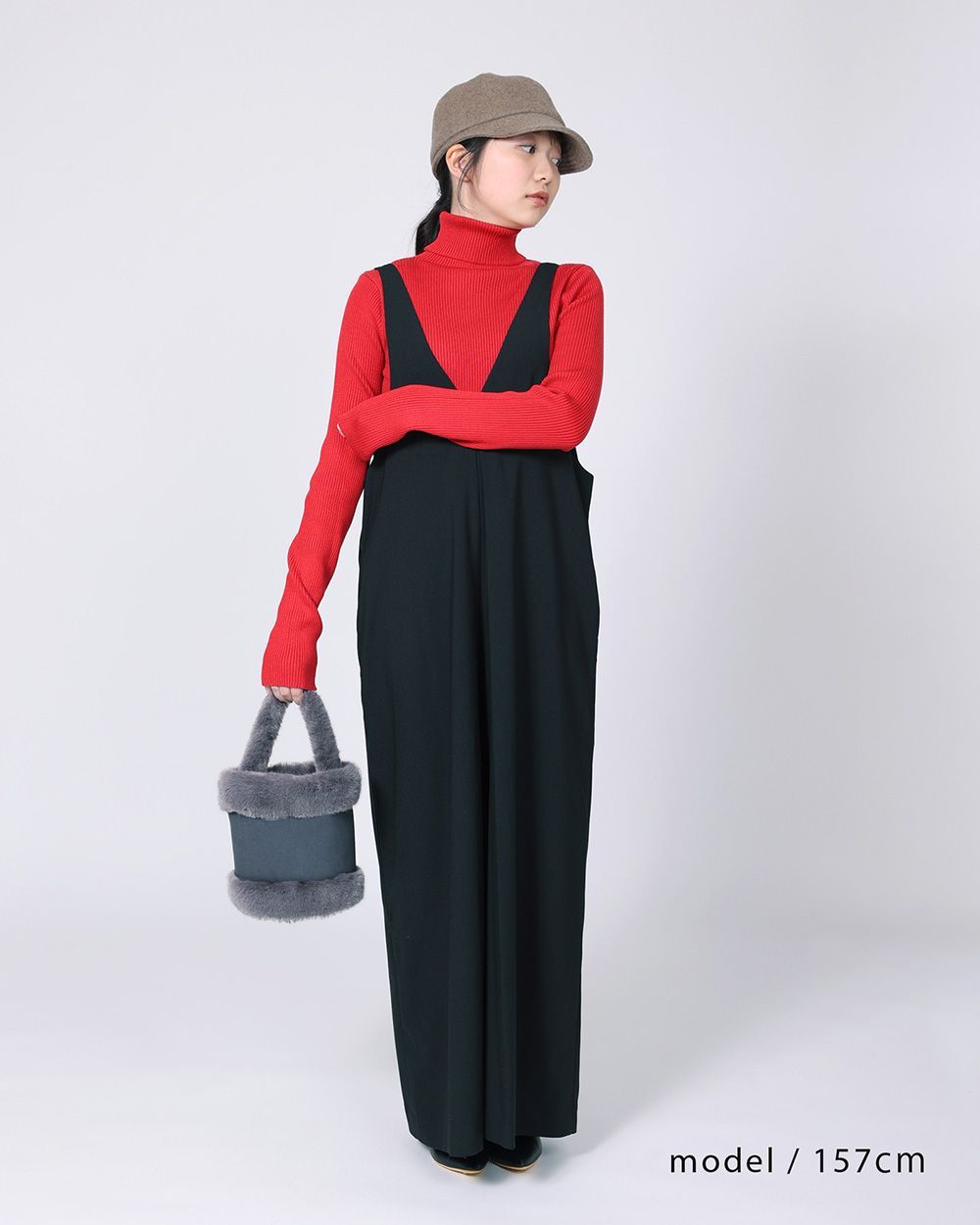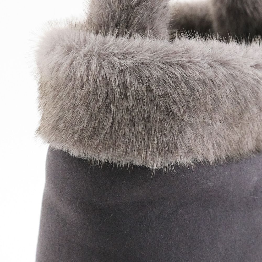 シーズンムードが高まるフェイクムートンのバッグ。トリミングとハンドルに使用したミンク調のファーがポイント。見た目にボリュームがあるので、サイズはあえてコンパクトに仕上げています。底マチがあるので、財布にスマホ、ちょっとした化粧品を入れるには問題ありません。デニムなどのカジュアルスタイルと相性◎です。