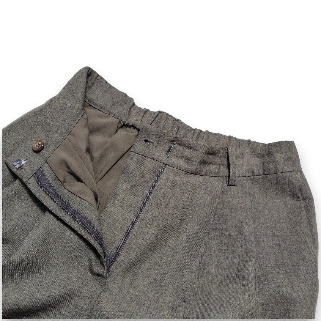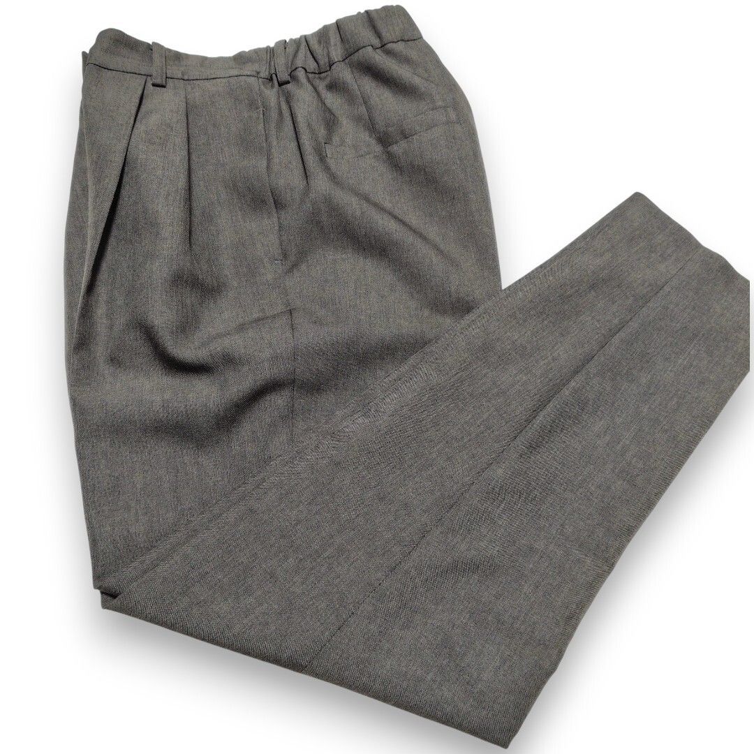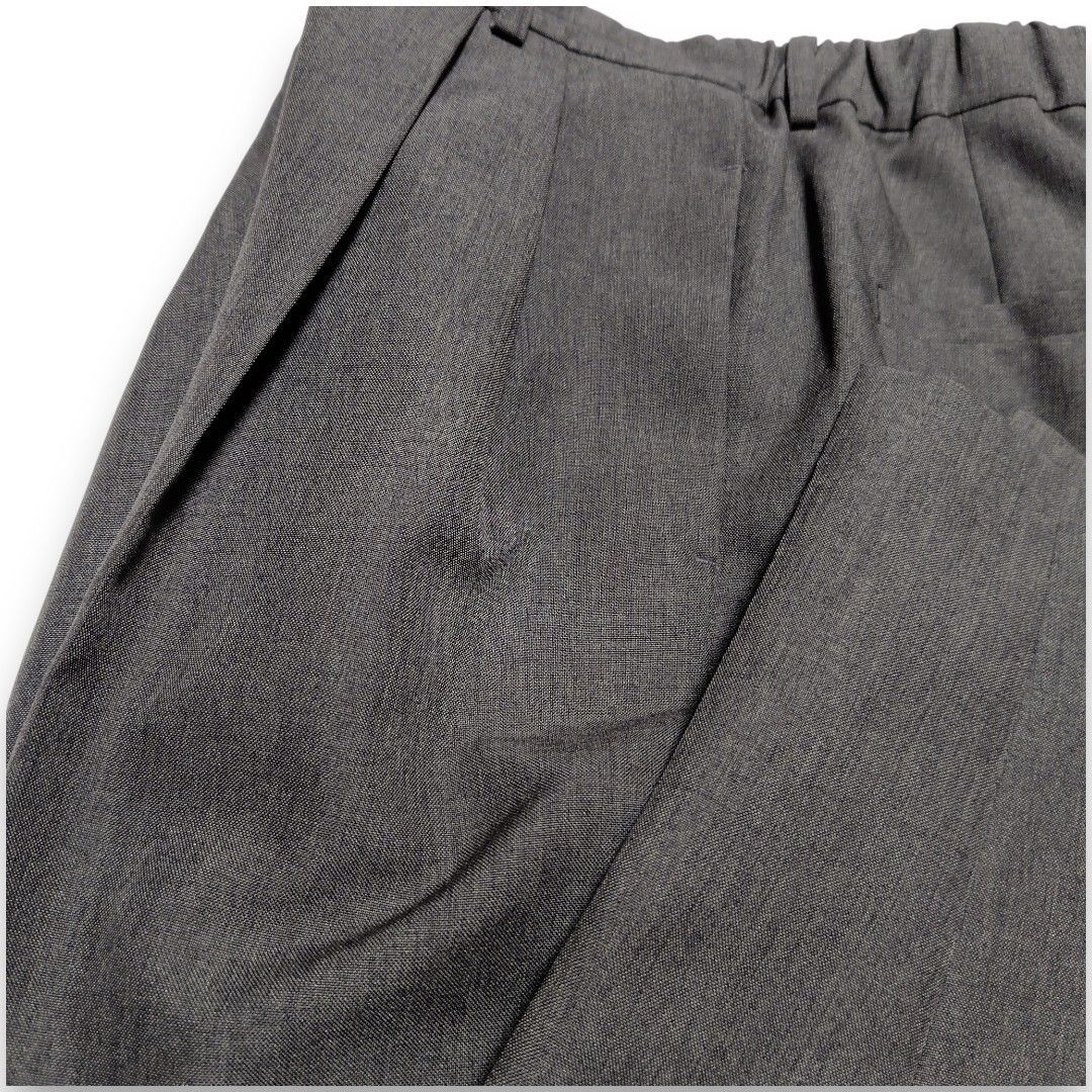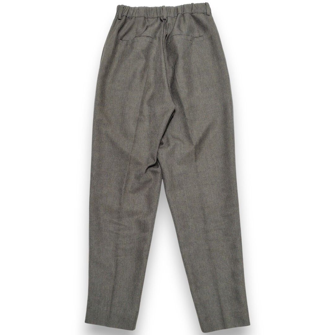 深めに入った2本のタックが腰回りを自然にカバーしつつ、裾に向かって細くなるテーパードラインが脚をまっすぐ綺麗に見せてくれます。