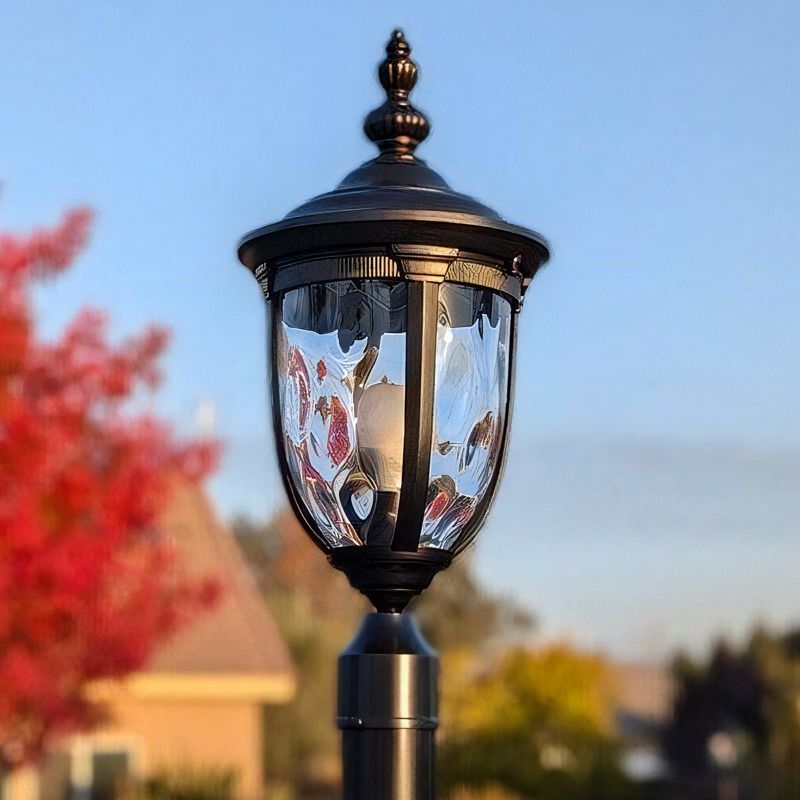 John Timberlandの『ベッラージオBK1灯アウトドアライト・屋外用照明』は、優雅で風格のあるポスト型の照明器具です。アンティーク風のデザインとクリアハンマードのガラスシェードが特徴で、高級感が漂うテクスチャードブラック仕上げが、玄関やポーチを上品に引き立てます。クラシカルな外観は輸入住宅や店舗の外装にもぴったりで、周囲に溶け込みつつも、独自の存在感を放ちます。高級感のあるデザインが、屋外空間をより一層魅力的に格上げします。