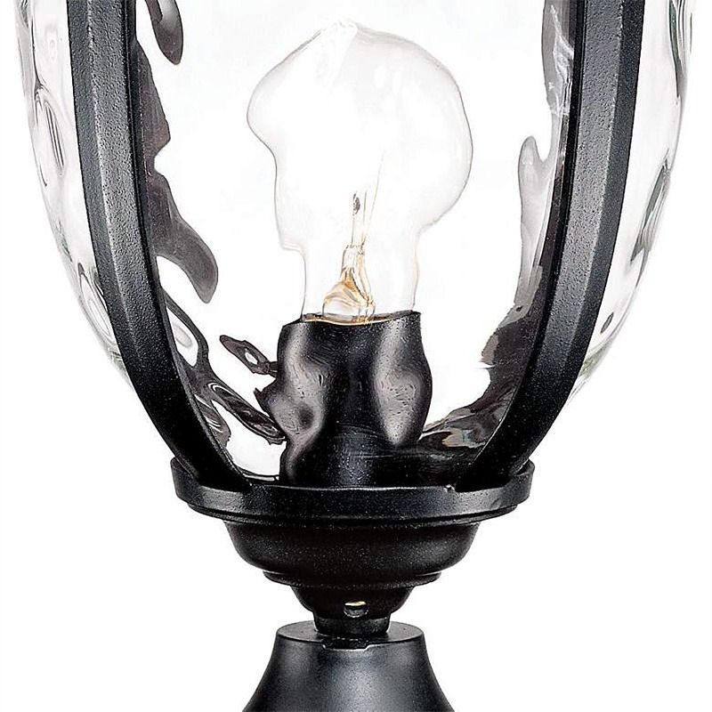 本体素材: ダイキャストメタル|フィニッシュ: テクスチャードブラック|シェード: クリアハンマードガラス|重量: 2.5kg|口金: E26|電力: 最大60 W x 1 ヶ