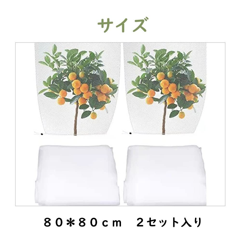 植物保護カバー 2個セット 80*80cm 防虫ネット メッシュ 通気 野菜栽培 花壇 園芸用ネット 糞害防止 鳥/カラス/ハト/こうもり/ネコ/犬/カタツムリ/へび/ヤモリなどの動物や昆虫を避けさせられる