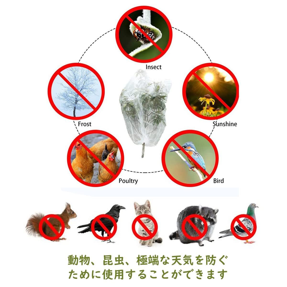 【保護カバー 】:被ってから締め、簡単に設置だけで嫌いな害獣・害虫の侵入を防止できます!鳥/カラス/ハト/こうもり/ネコ/犬/カタツムリ/へび/ヤモリなどの動物や昆虫を避けさせられます。