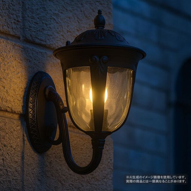 Wentai Lightingの「アウレリア1灯アウトドアライト」は、おしゃれで重厚感のあるアンティークなデザインの壁付けタイプのアウトドアライトです。可愛らしいフォルムと美しいカーブを持つブラケットが上品な印象を与え、玄関やポーチを心地よい光で照らします。ディープなブロンズカラーと繊細なリーフの飾りがアンティークな雰囲気を際立たせ、温かみのある仕上がりになっています。 このライトはクラシカルでエレガントなデザインが特徴で、輸入住宅や店舗のエクステリアにもぴったりです。直接雨に濡れる場所にも設置可能で、耐久性に優れています。夜になると周囲を暖かな灯りで包み込み、ガーデンライトとしても利用できます。玄関やポーチに設置すると、クラシカルな雰囲気を演出し、重厚感のあるデザインが空間を引き立てます。