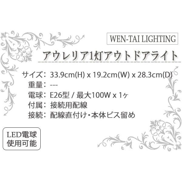 製品名: アウレリア1灯アウトドアライト・屋外用照明|壁付けタイプ・アップ型