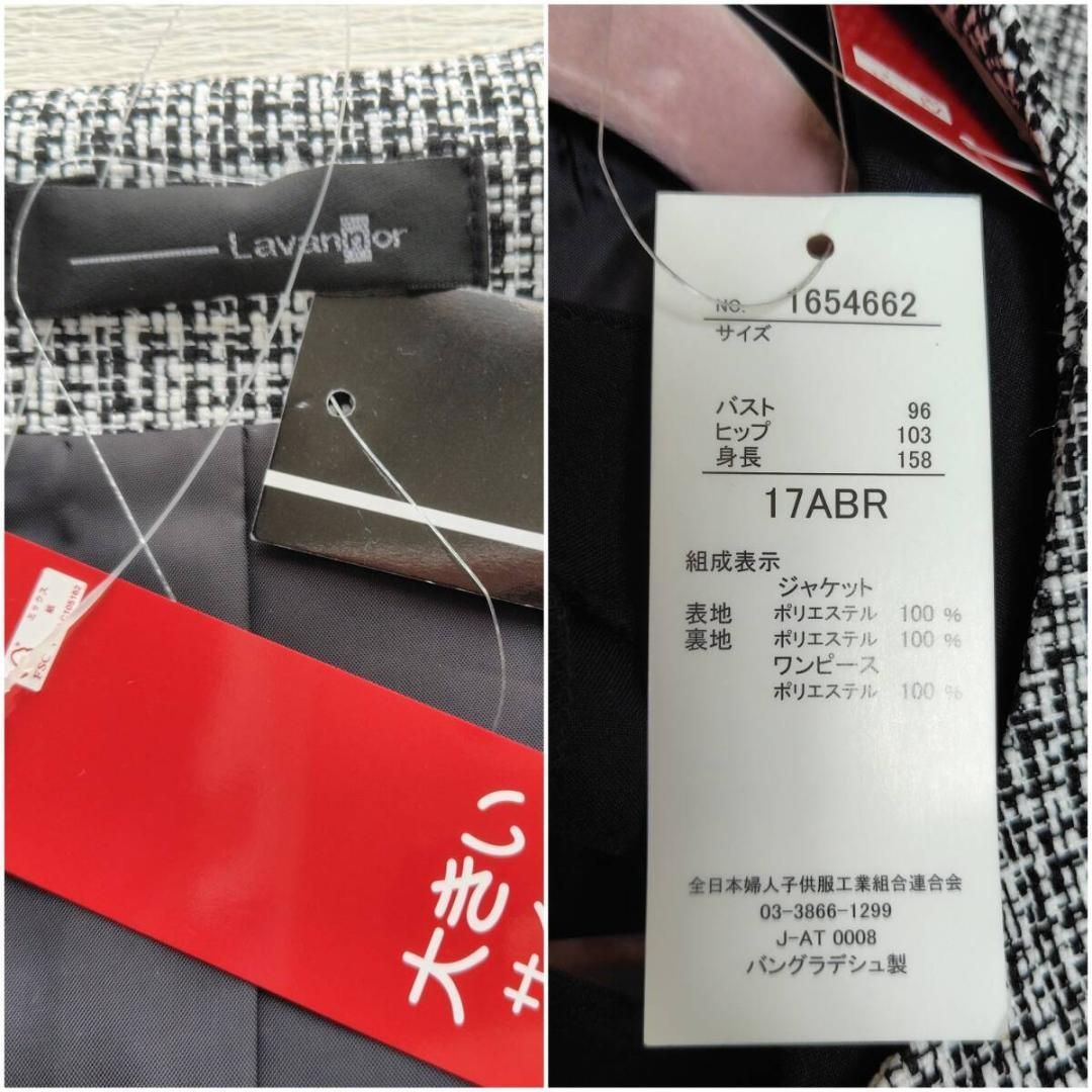 未使用 17号 Lavannor フォーマル3点セット ツイードノーカラージャケット ブラック ワンピース 大きいサイズ 250426