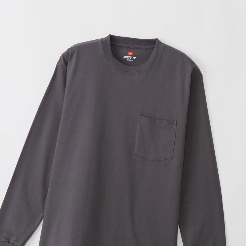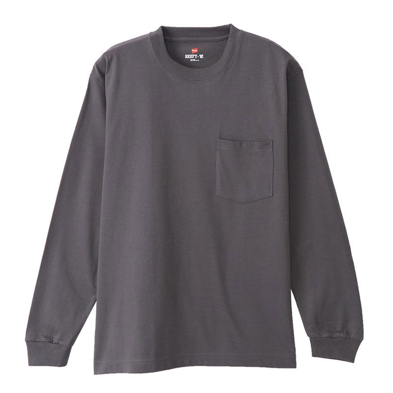 ヘインズ HANES L/S POCKET T-SHIRT Hanes INNERWEAR ウェア(メンズ・ユニ) (H5196)、(081)ダークグレー