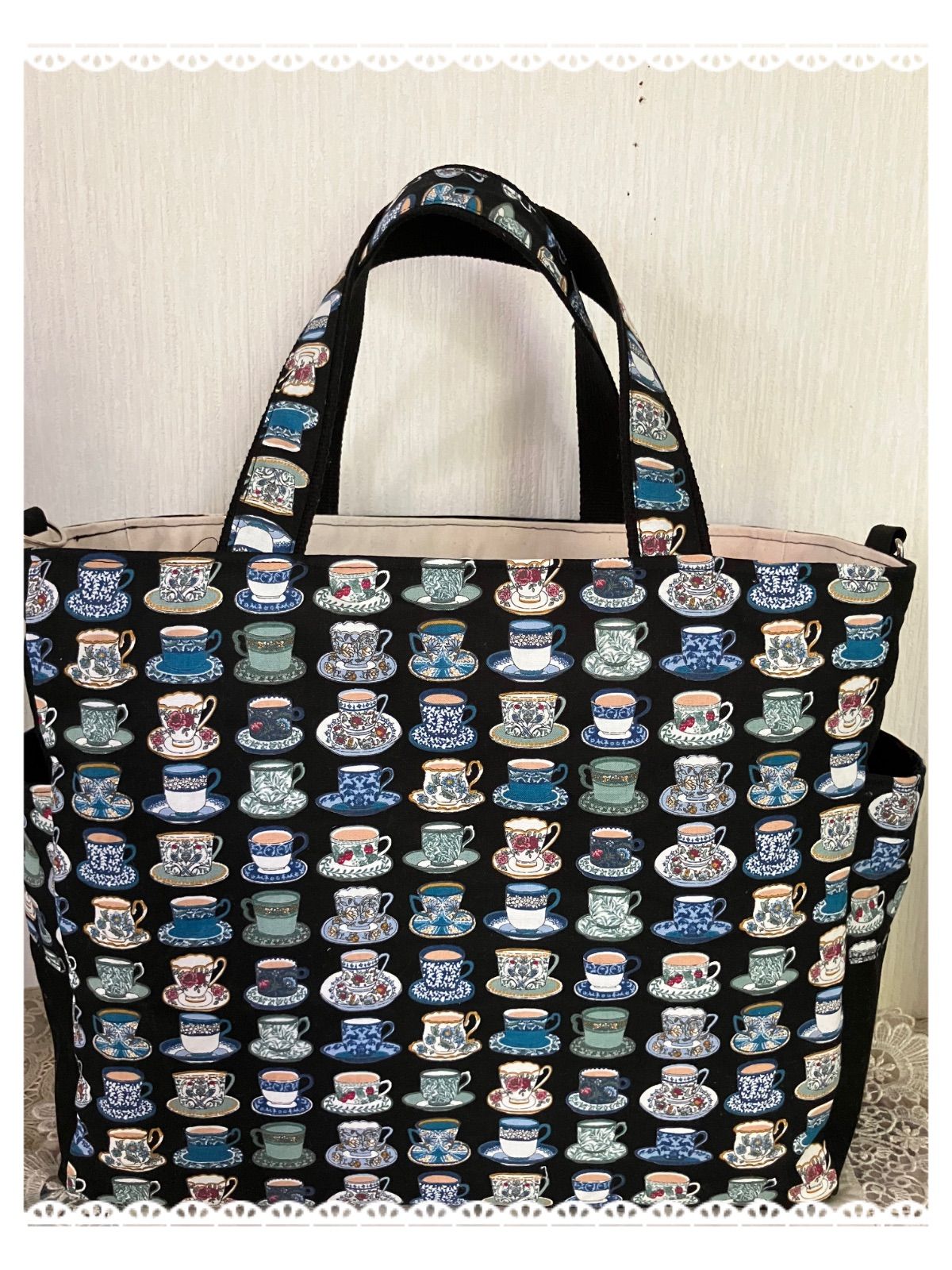 国産生地 アールヌーヴォーコレクション アンティークティーカップ ブラック生地を使って作成しました。