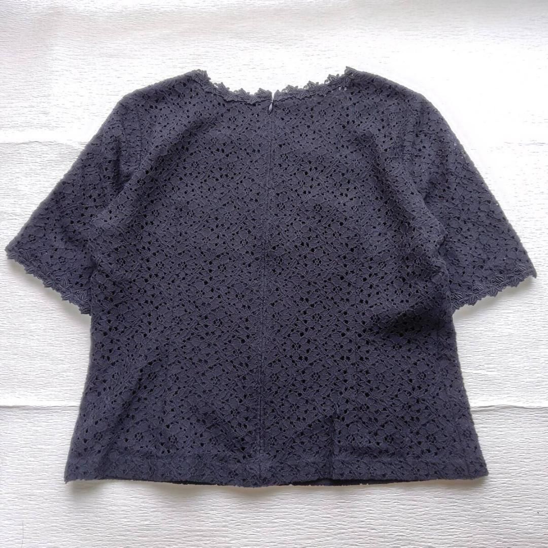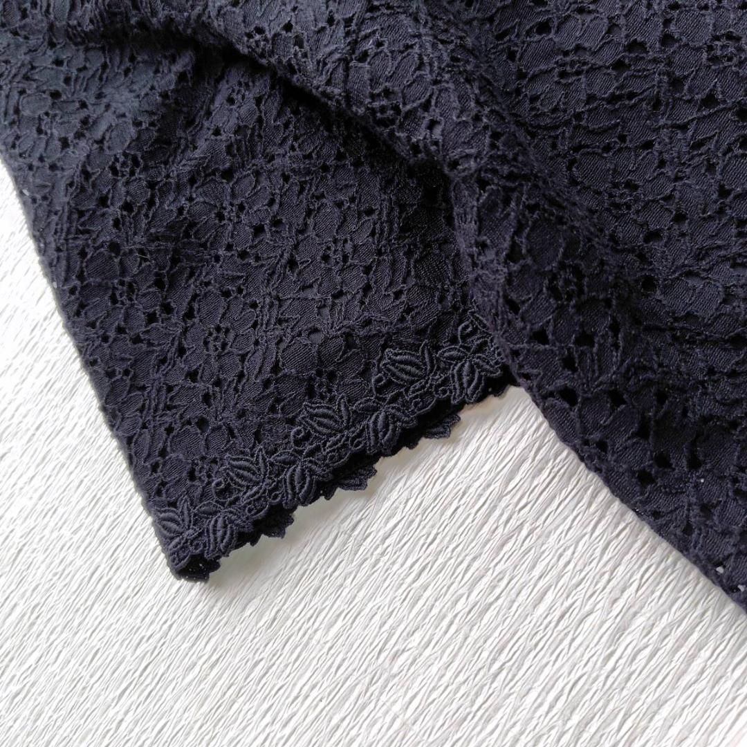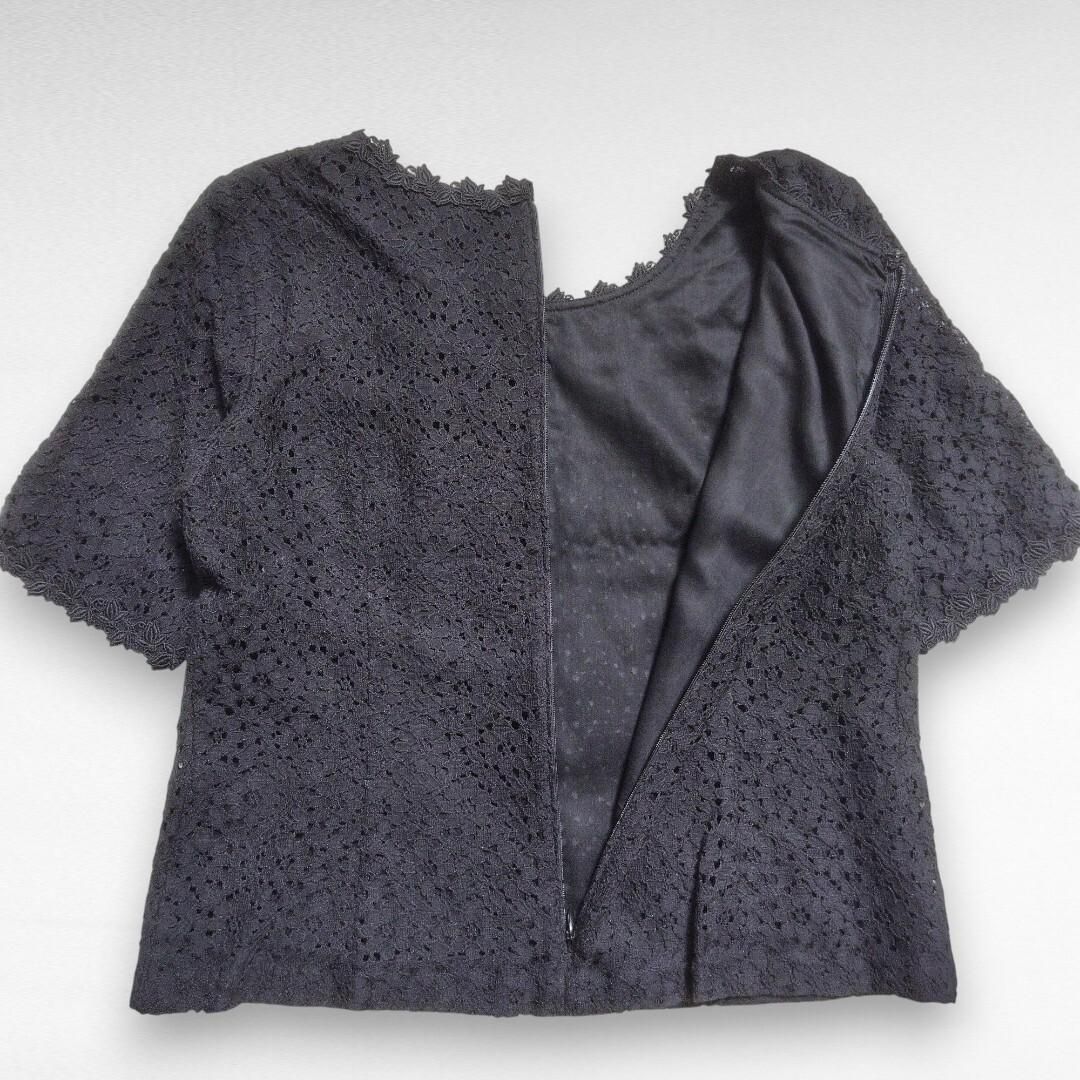 DAKS Floral pattern all lace short sleeve blouse Back zipper Black Ladies 40L Feminine Gorgeous