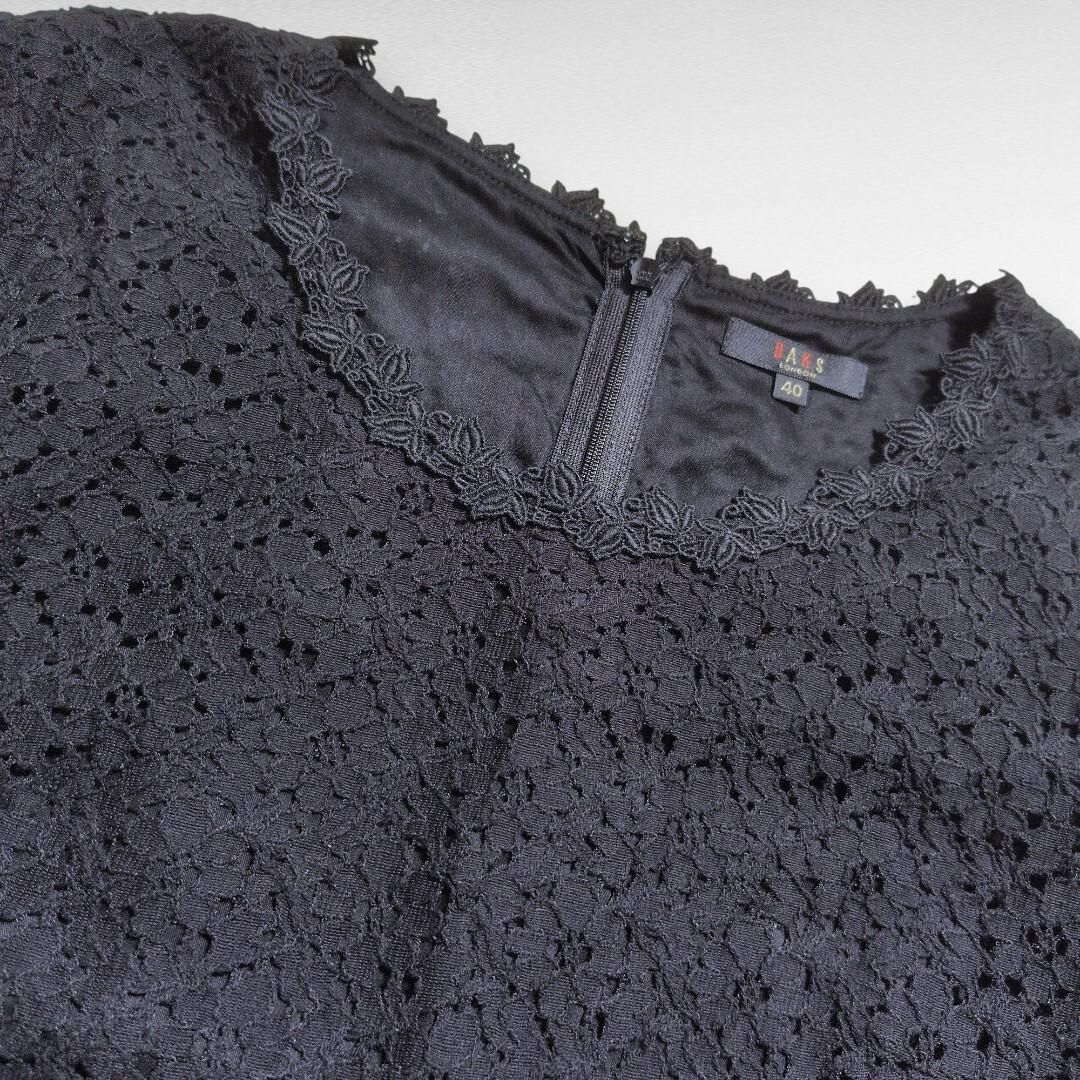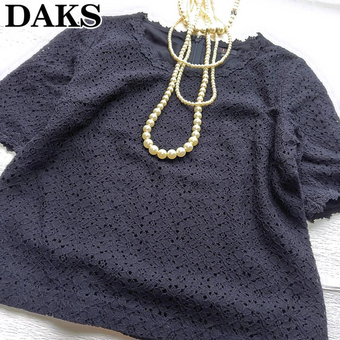 DAKS 花柄総レース 半袖 ブラウス 後ろファスナー 黒 レディース40 L フェミニン 華やか ダックス 250801-01
