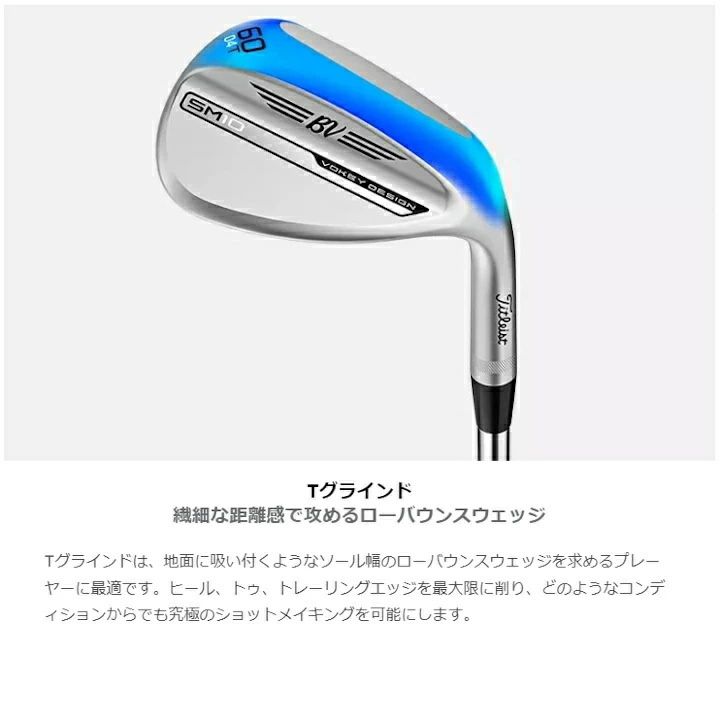 ゴルファーのスイングはそれぞれに異なるので、そのスイングに合ったスペックが必要です。あなたのプレースタイルに理想的なグラインドの組み合わせを見つけることで、理想的なコンタクトと最大限の許容性が得られ、コース上で要求されるあらゆる条件に備えることができるのです。SM10 ブラックベイパーは、ツアーで実績のある4種類のグラインドをもって、あなたのウェッジゲームの可能性を最大限に広げます。