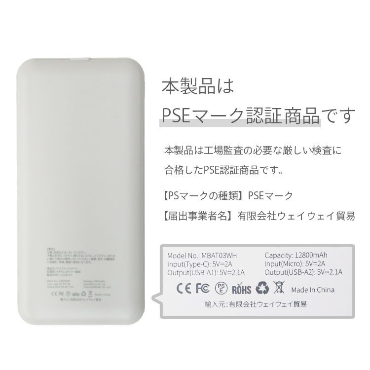 本製品モバイルバッテリーはPSE認証獲得済みです。ご安心してお使いいただけます。
