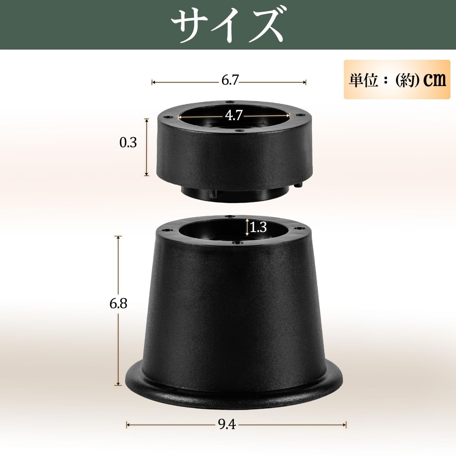 【商品詳細】サイズ:約9.4×6.7×7.1cm 5.5cmと8cmの2通りの高さが選べます。耐久性に優れた素材を採用し、約1000kgまでの重さに対応しています。
