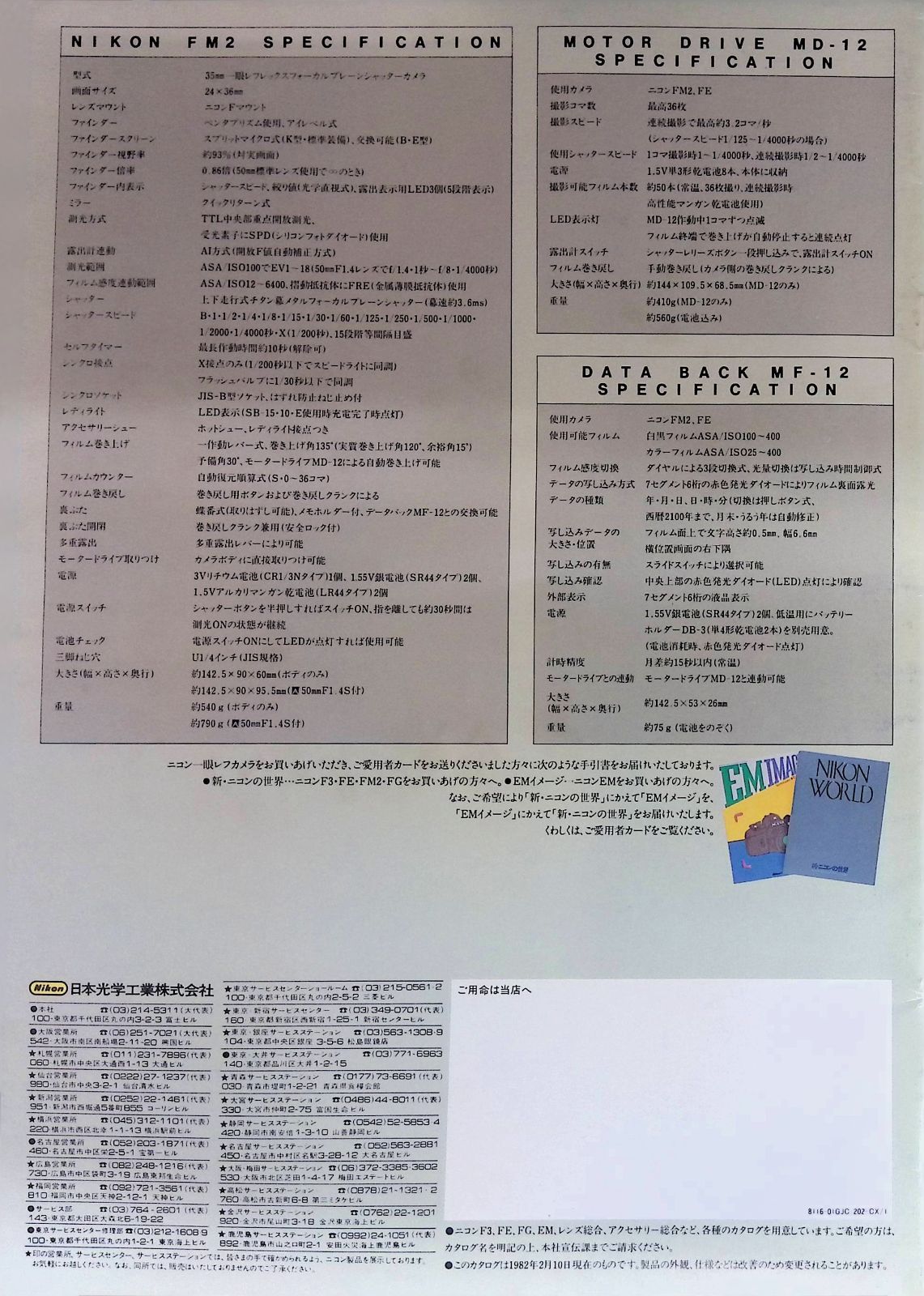 カメラ パンフレット カタログ Nikon ニコン FM2 Manual Nikon MAV.4000 1982年2月 一眼レフ