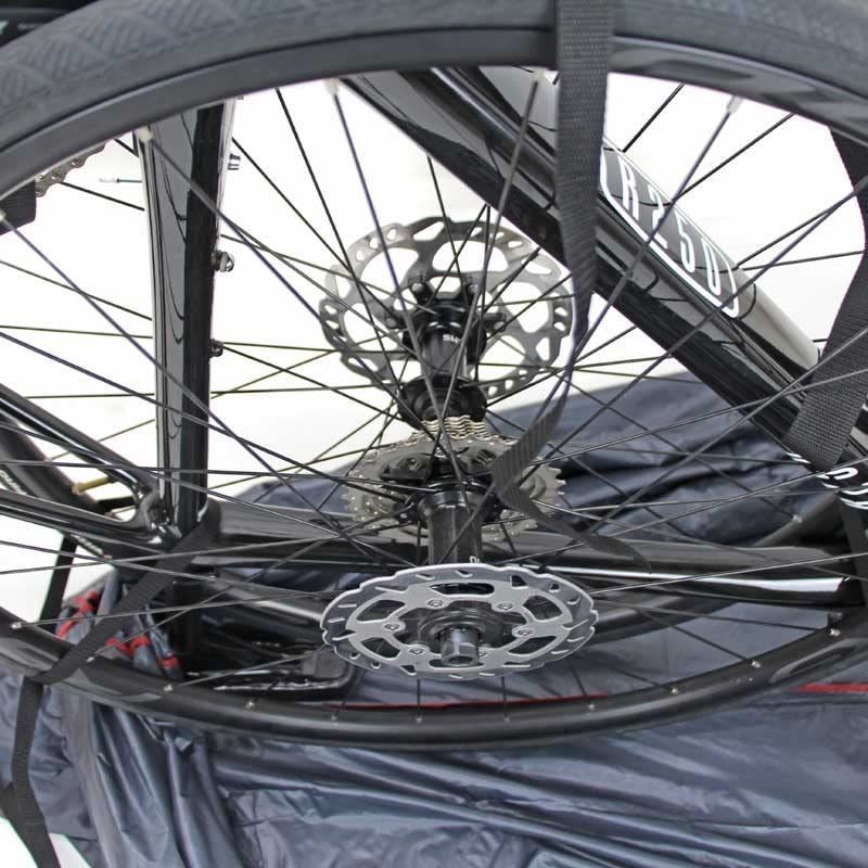 3本のワンタッチバックルによって、簡単にフレームとホイールを固定できます。