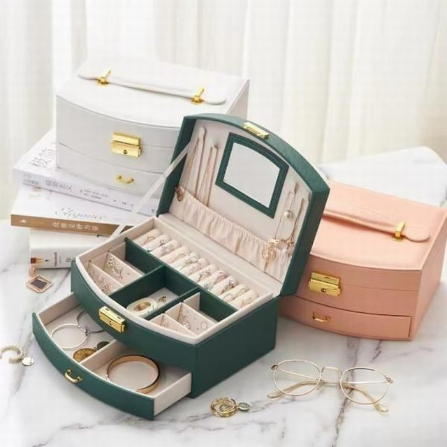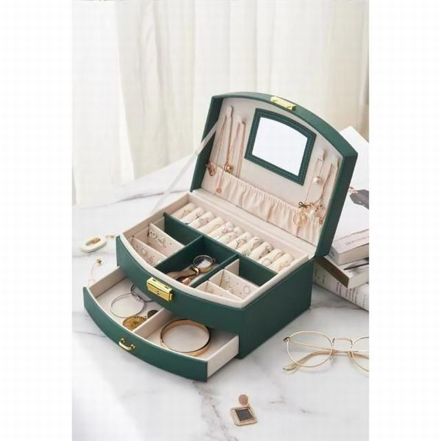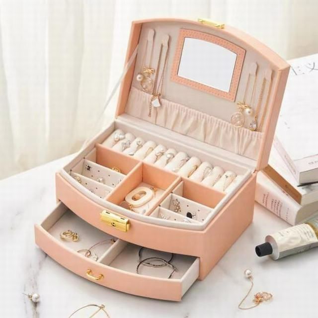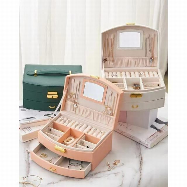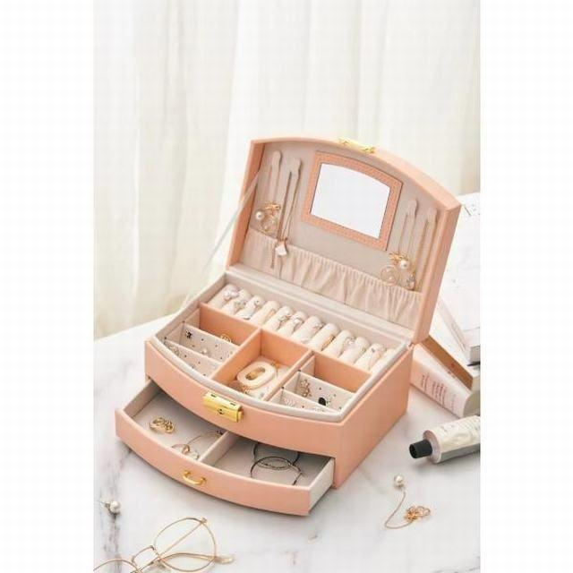 ☆ジュエリーボックス ジュエリー収納 アクセサリーケース 女の子 女性 人気 2層 鏡付き 大容量 小物入れ ピアス ネックレス PUレザー 指