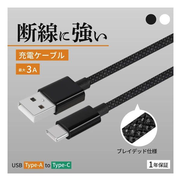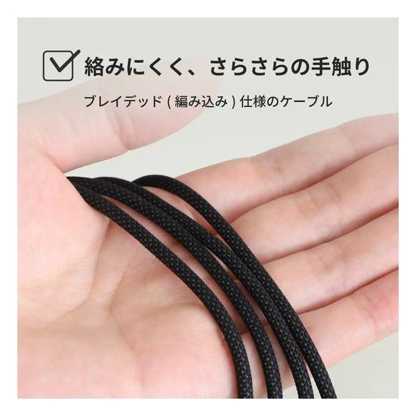 ●高耐久で絡みにくいナイロン編み込みケーブル