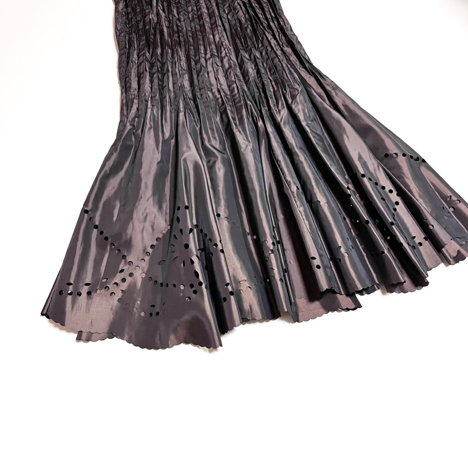 2点セット ペチコート付き カットワーク プリーツスカート ロングスカート マーメイドスカート ウエストゴム 日本製 made in japan 花柄