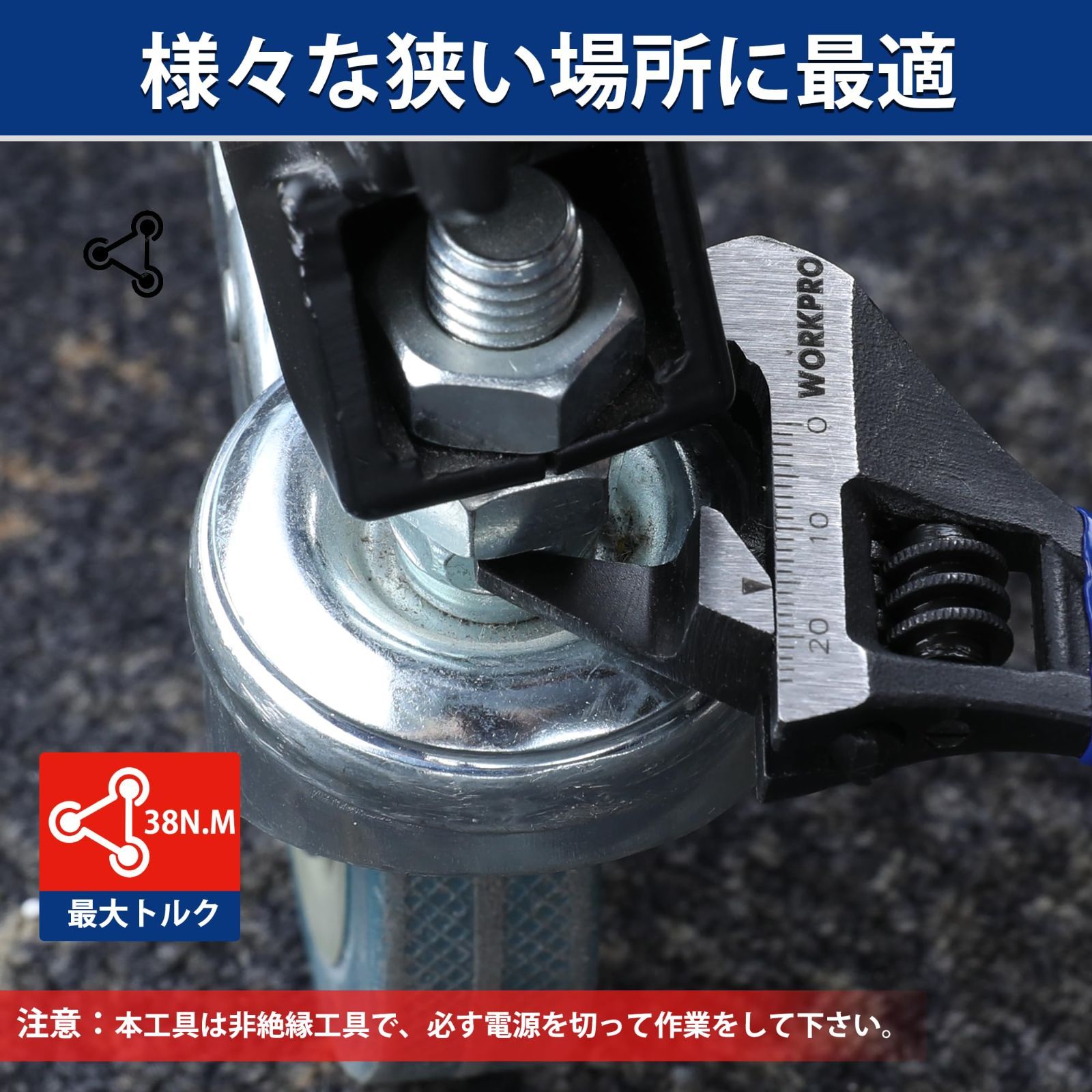 【先端薄型】WORKPRO モンキーレンチ ミニ ワイドモンキー アジャスタブルレンチ 水栓レンチ シートタイプ 120mm 最大開口24mm 調整可能 目盛付 CR-V 水道管 水栓 配管 自動車 オートバイ修理 機械修理
