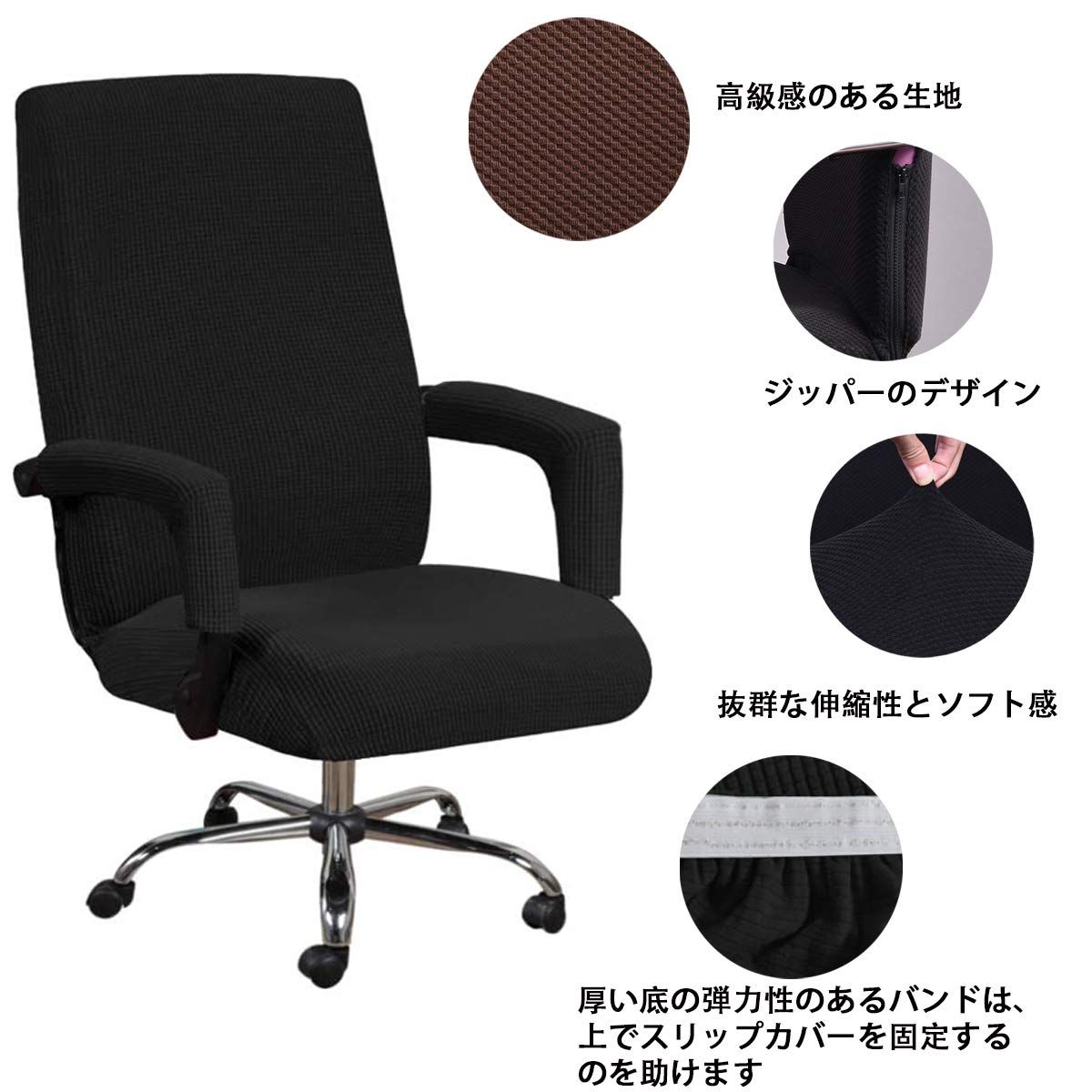 Betyun オフィス椅子カバー チェアカバー オフィスチェアカバー 椅子カバー イス 椅子 いすカバー オフィス用 イスカバー パソコンチェアカバー オフィスチェア 肘掛けカバーが付 伸縮素材 背もたれあり 洗濯可能 取り外し可能 (ブラック Large)