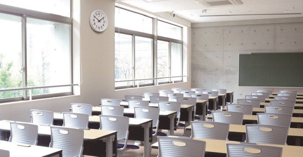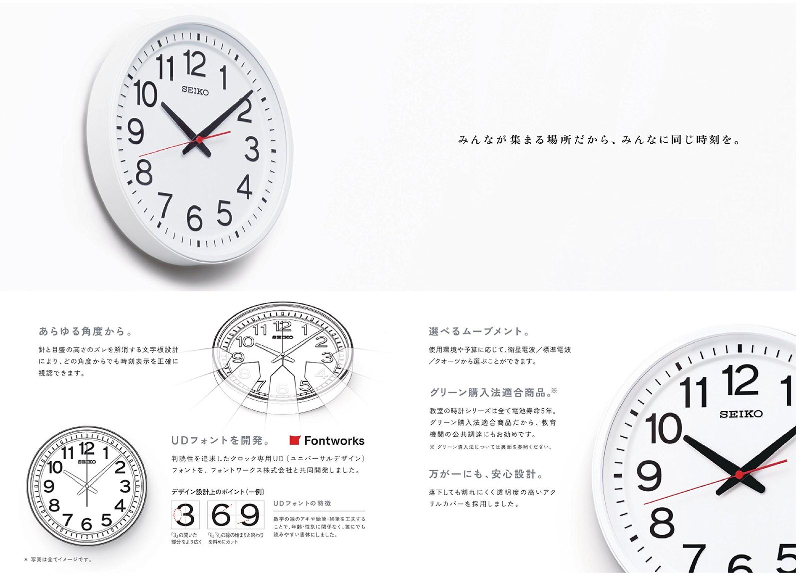 どこから見ても見やすい「教室の時計」。