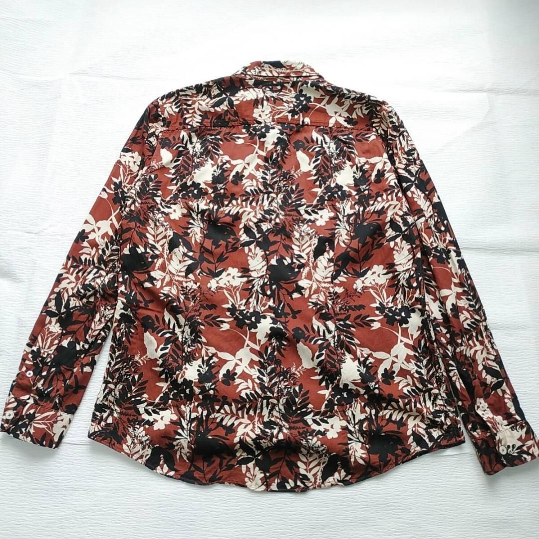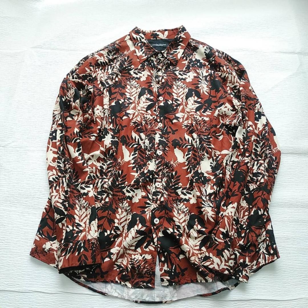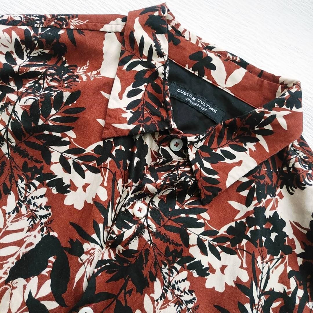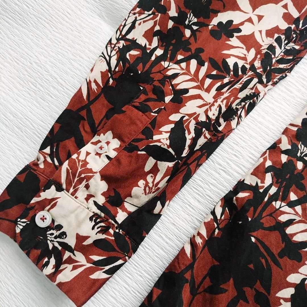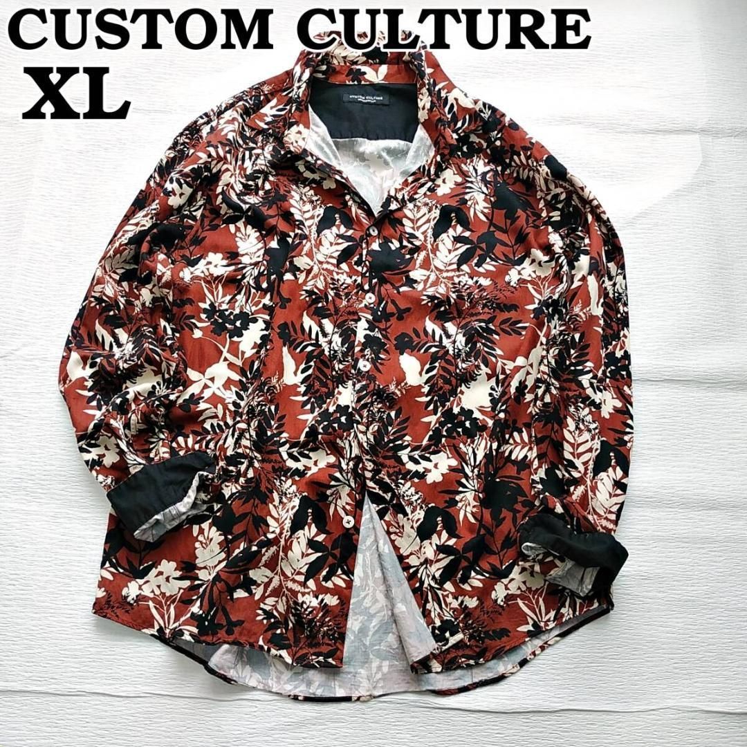 大きいサイズXL CUSTOM CULTURE ボタニカル柄 カスタムカルチャー メンズ4 茶 レーヨン 長袖シャツ 日本製 240522-05