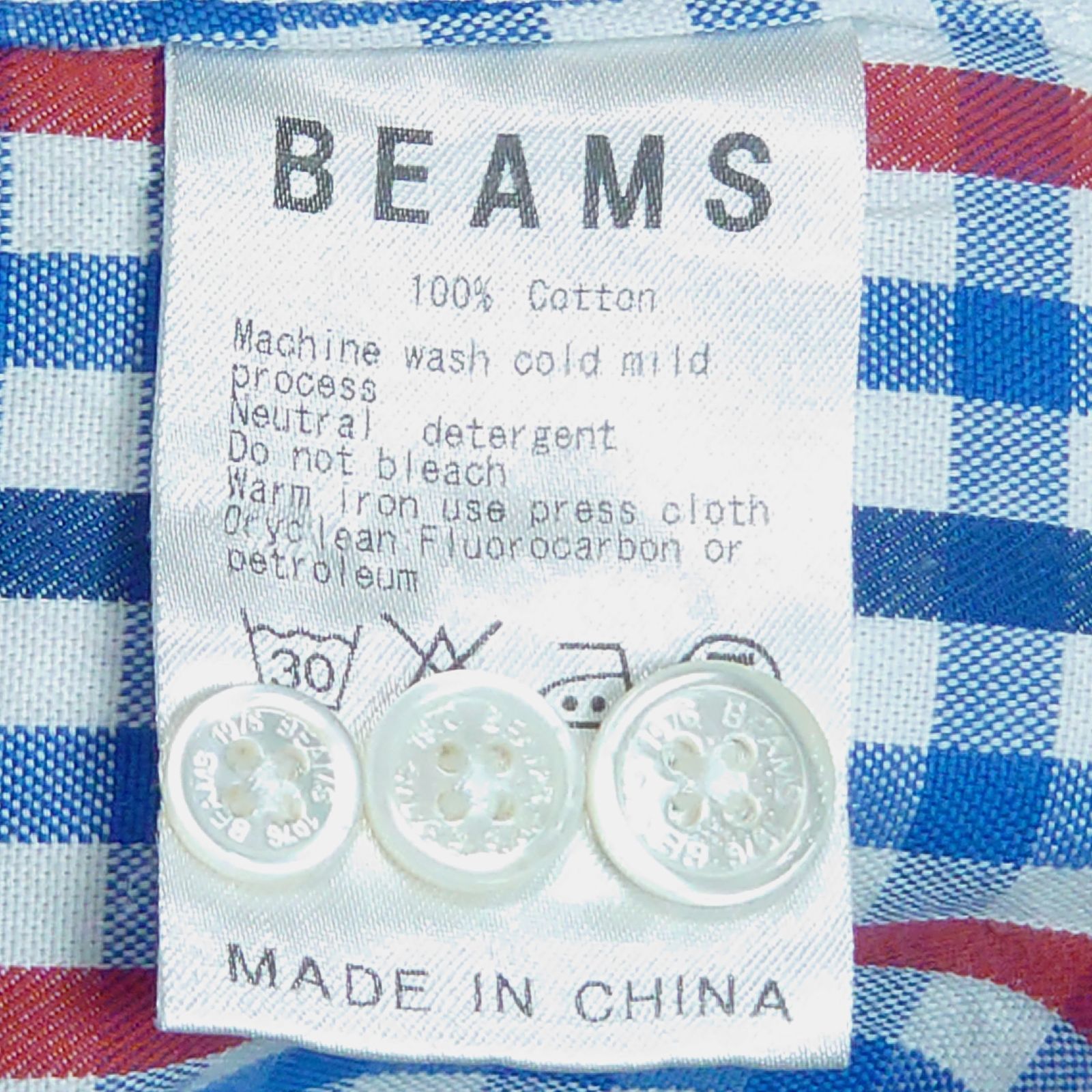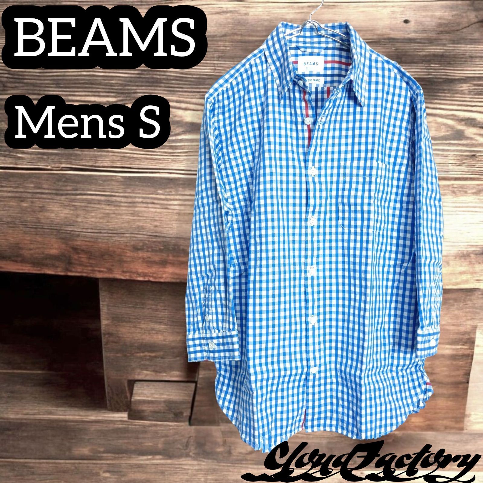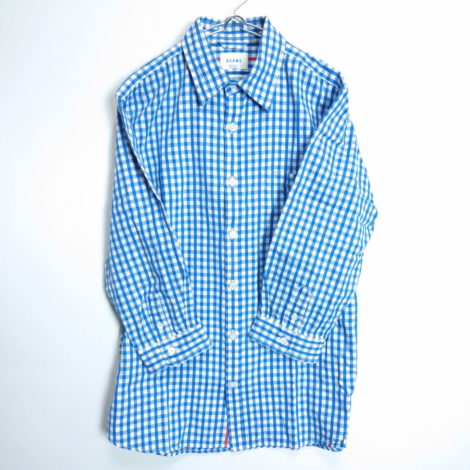 ◆BEAMS コットンチェックシャツ 七分袖 メンズS〜M