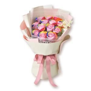 【新品・3営業日で発送】ソープフラワー レインボーローズブーケH45cm (S-142RB)【入数:8】