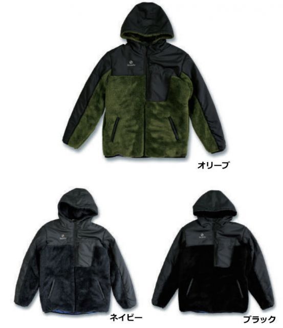 裏地がついたボアフリースフーディジャケット。保温性と防風性を兼ね備え、真冬でも十分に寒さをしのぐことができます。