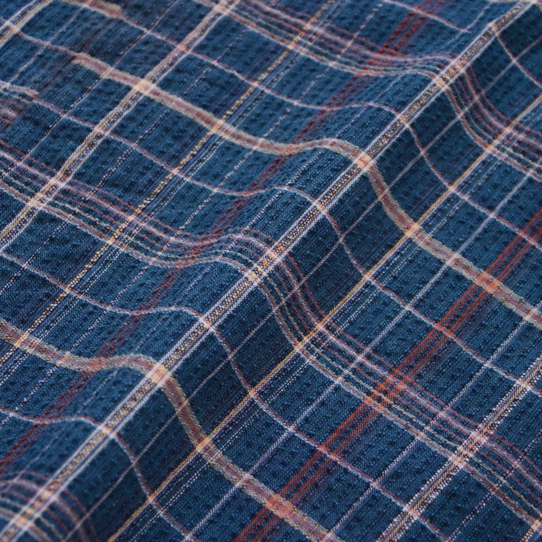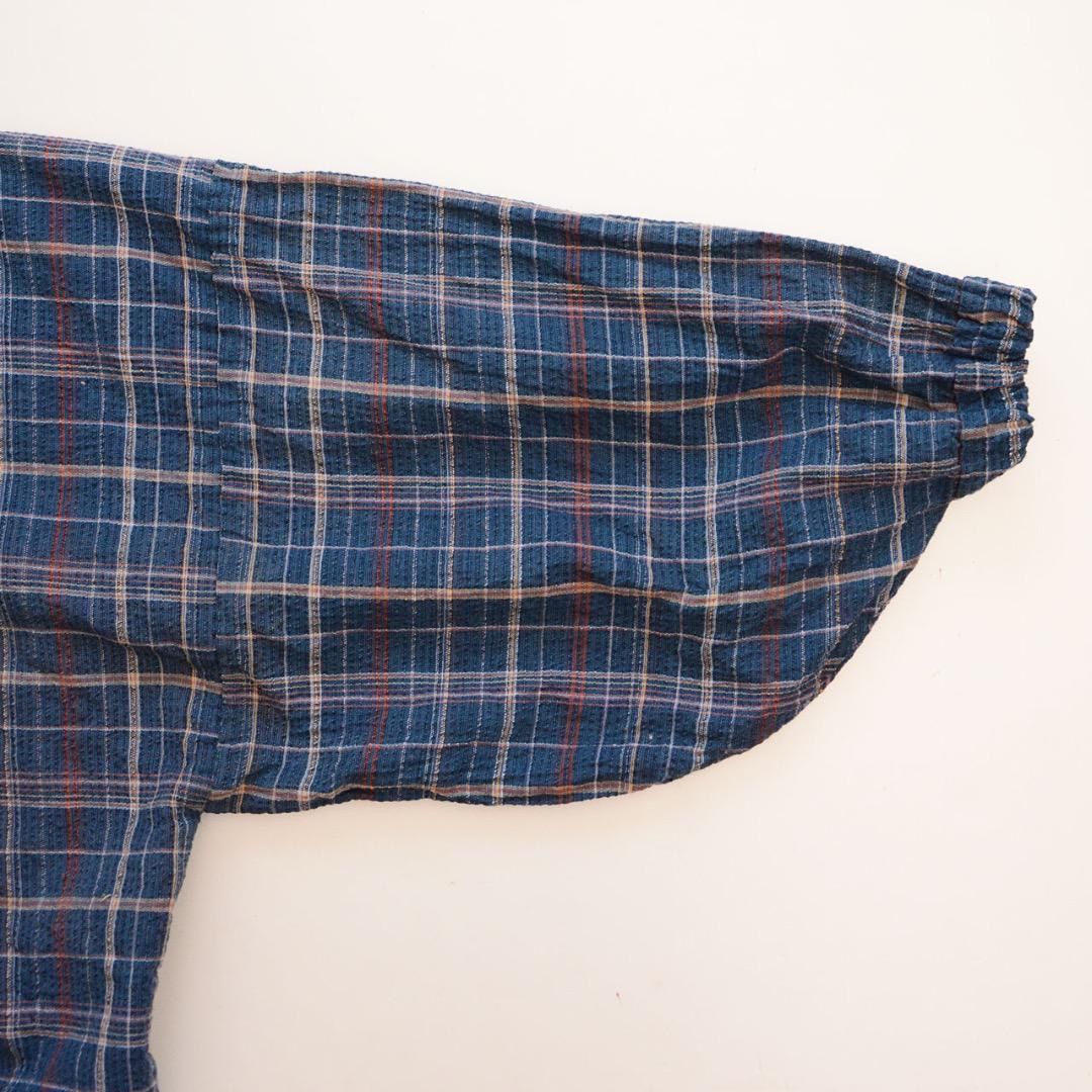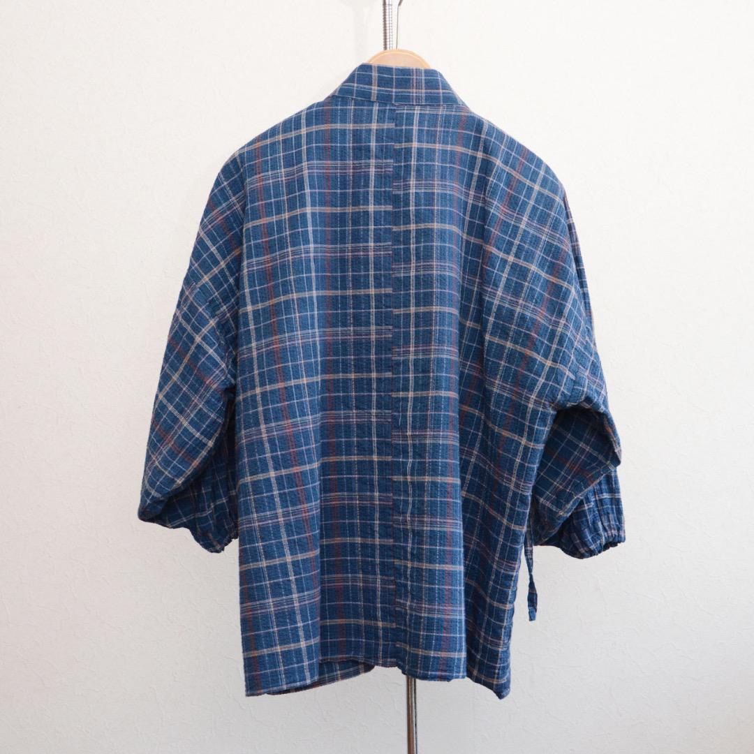 凹凸のある独特の風合いが心地よい「しじら織」の木綿生地を使い、格子柄で仕立てた作務衣ジャケットです。