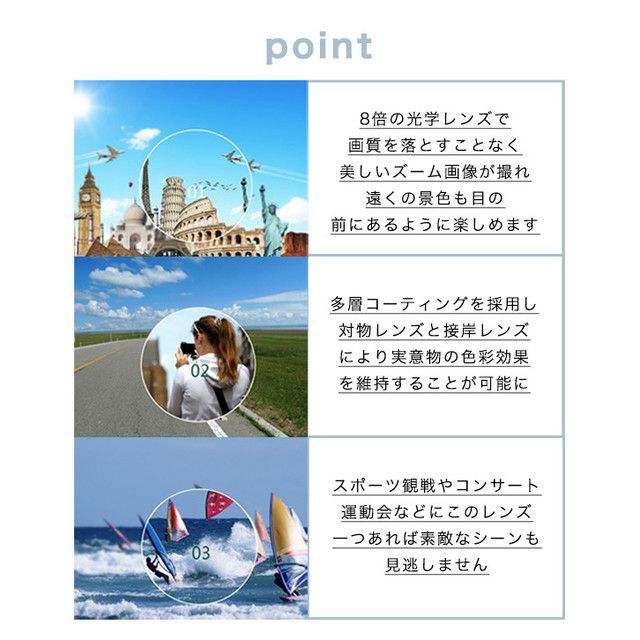 スマホ 望遠レンズ 8倍 高倍率 光学 ズームレンズ 望遠カメラ