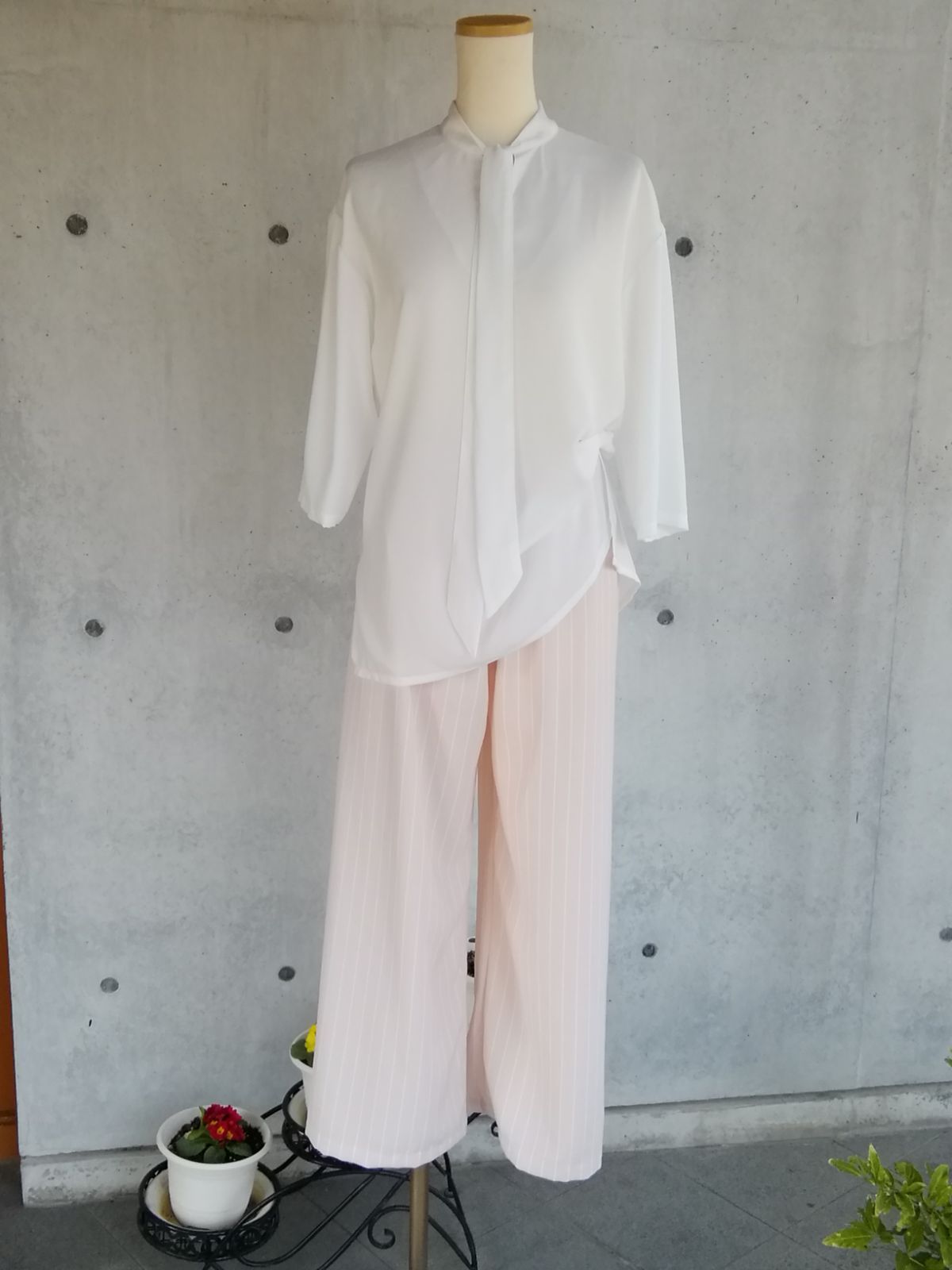 ボトムインしてフォーマル時のブラウスとしても着ていただけ、アウトですっきり普段使いも可能。着回しできるロングブラウスです。