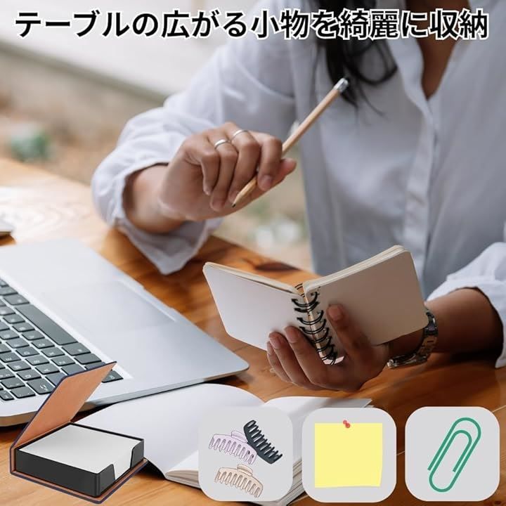 テーブルの上にある付箋、ポストイットをかっこよく「飾る」 事ができるポストイット用レザーケースになります。