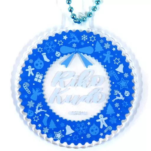 メンバー名が英字でデザインされたリース風のキーホルダーです。